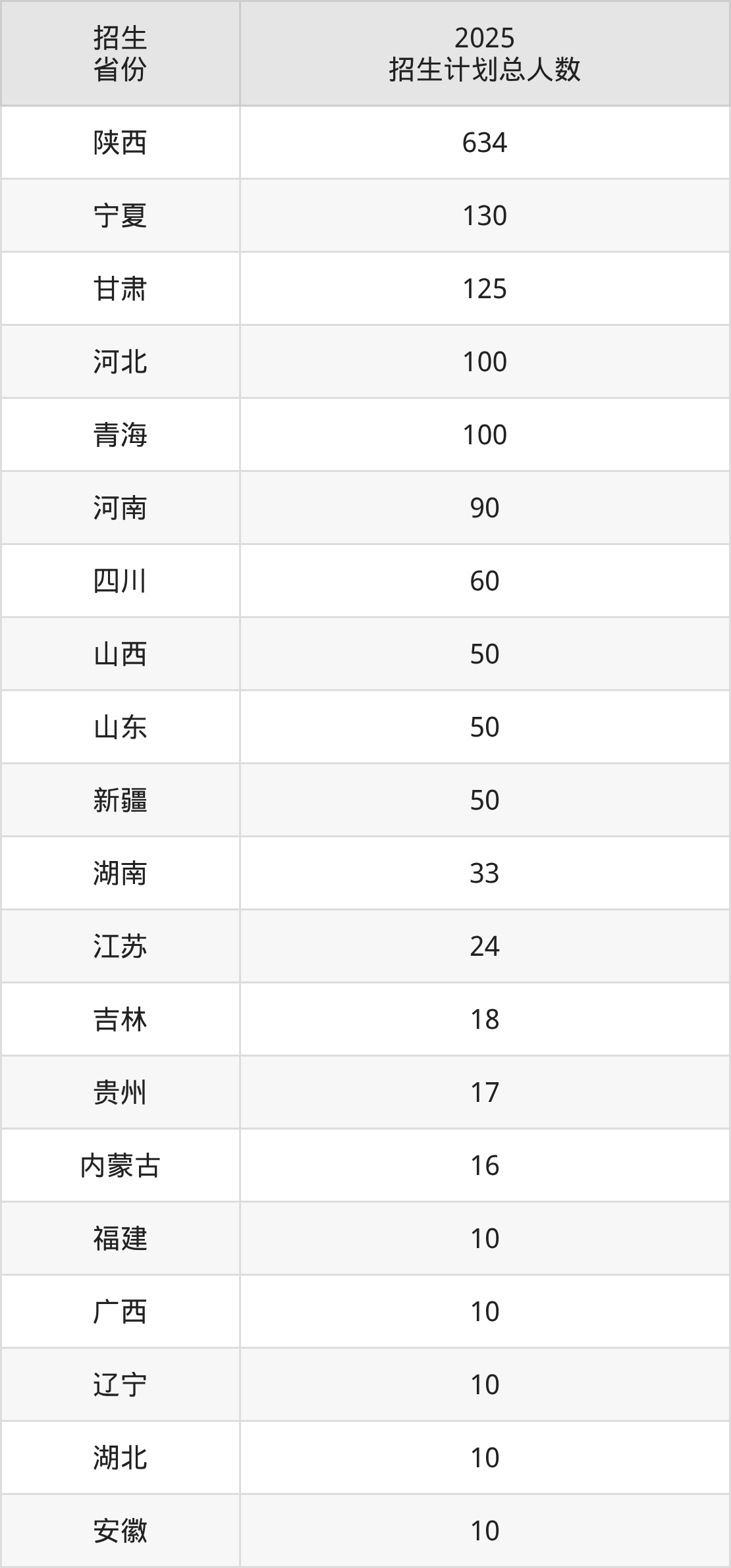 2025年陕西交通职业技术学院面向全国27个省市开展专科招生;招生专业共44个,招生人数共1615人。2025年在陕西省招生计划总人数是634人,其中,陕西交通职业技术学院在陕西省招生人数最多的是大数据与会计。陕西交通职业技术学院在各省具体招生人数情况如下表。