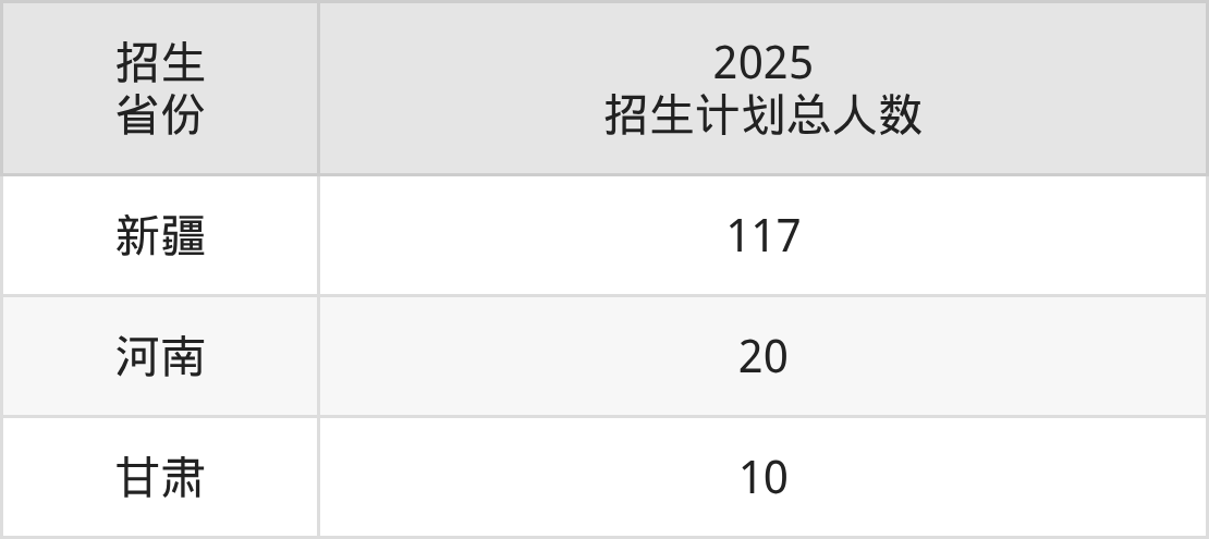 2025年新疆工业职业技术学院面向全国3个省市开展专科招生;招生专业共7个,招生人数共147人。2025年在新疆维吾尔自治区招生计划总人数是117人,其中,新疆工业职业技术学院在新疆维吾尔自治区招生人数最多的是有色金属智能冶金技术。新疆工业职业技术学院在各省具体招生人数情况如下表。
