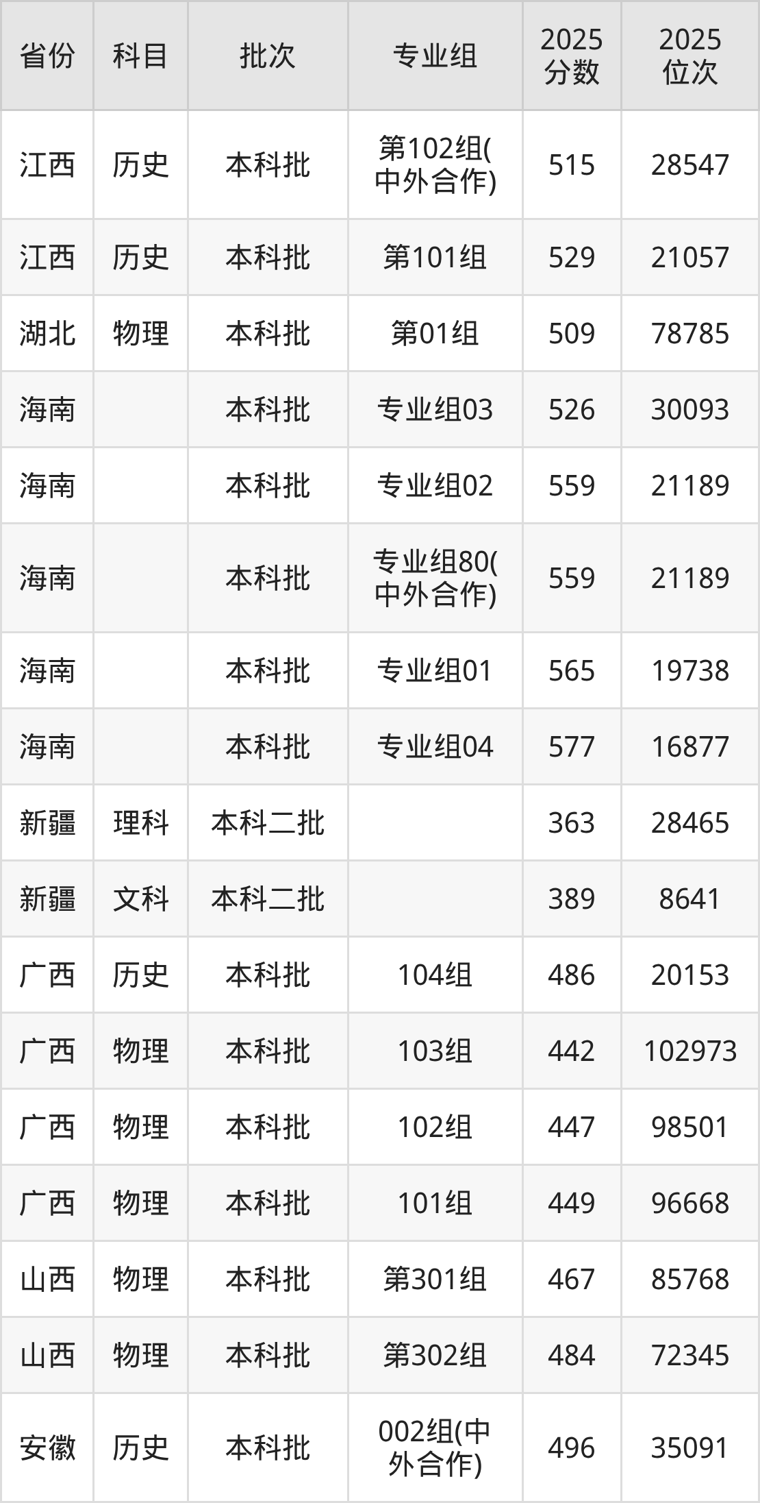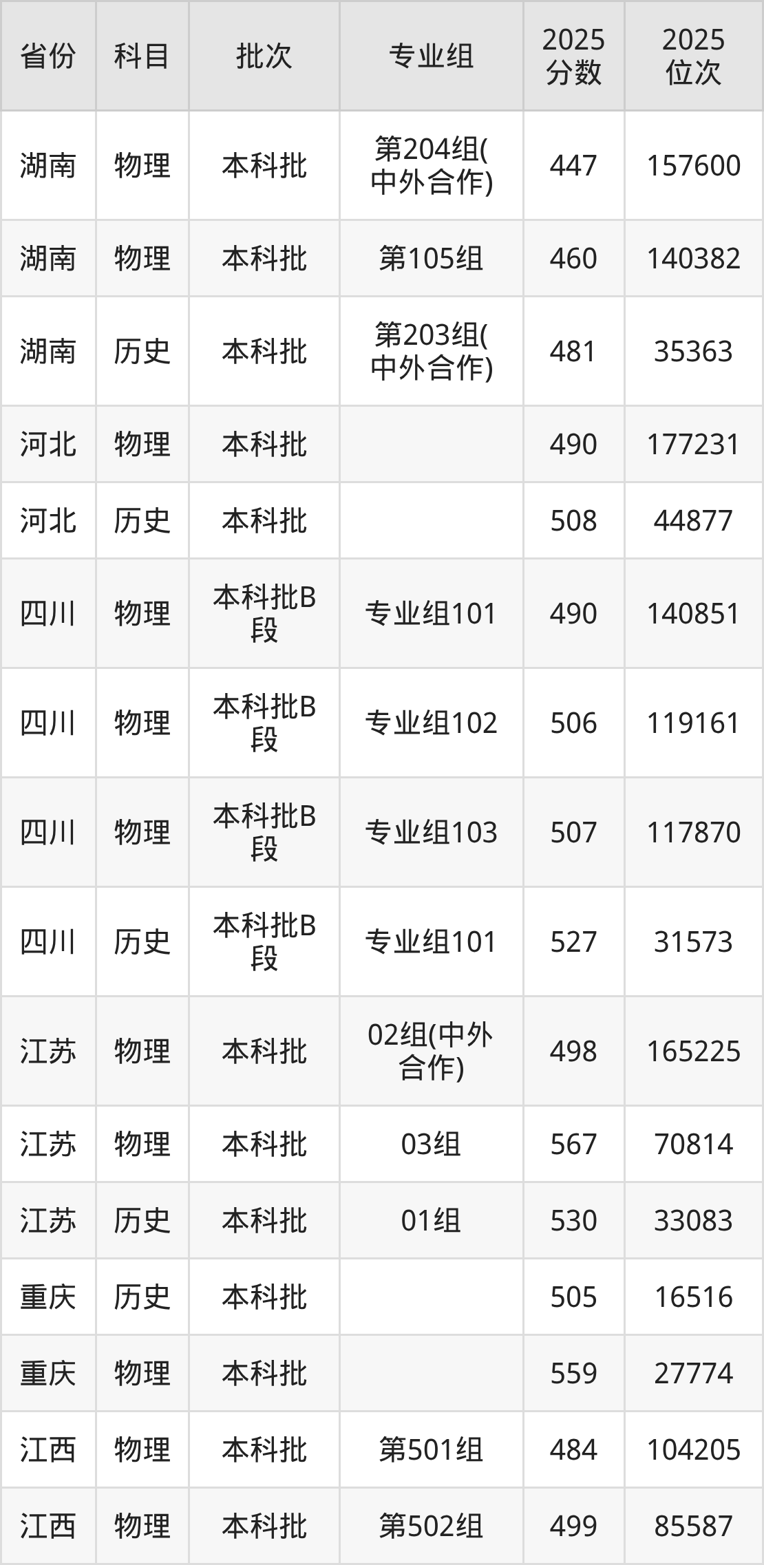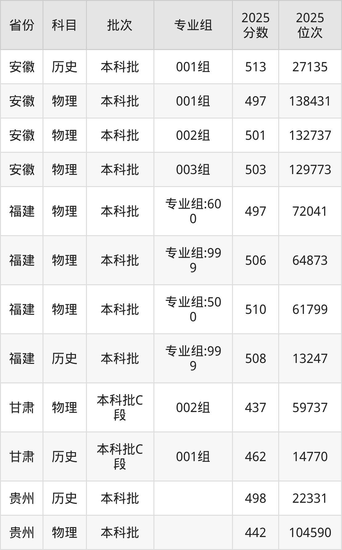 2025年在本科物理类进行招生,各专业组分数线详情如下: