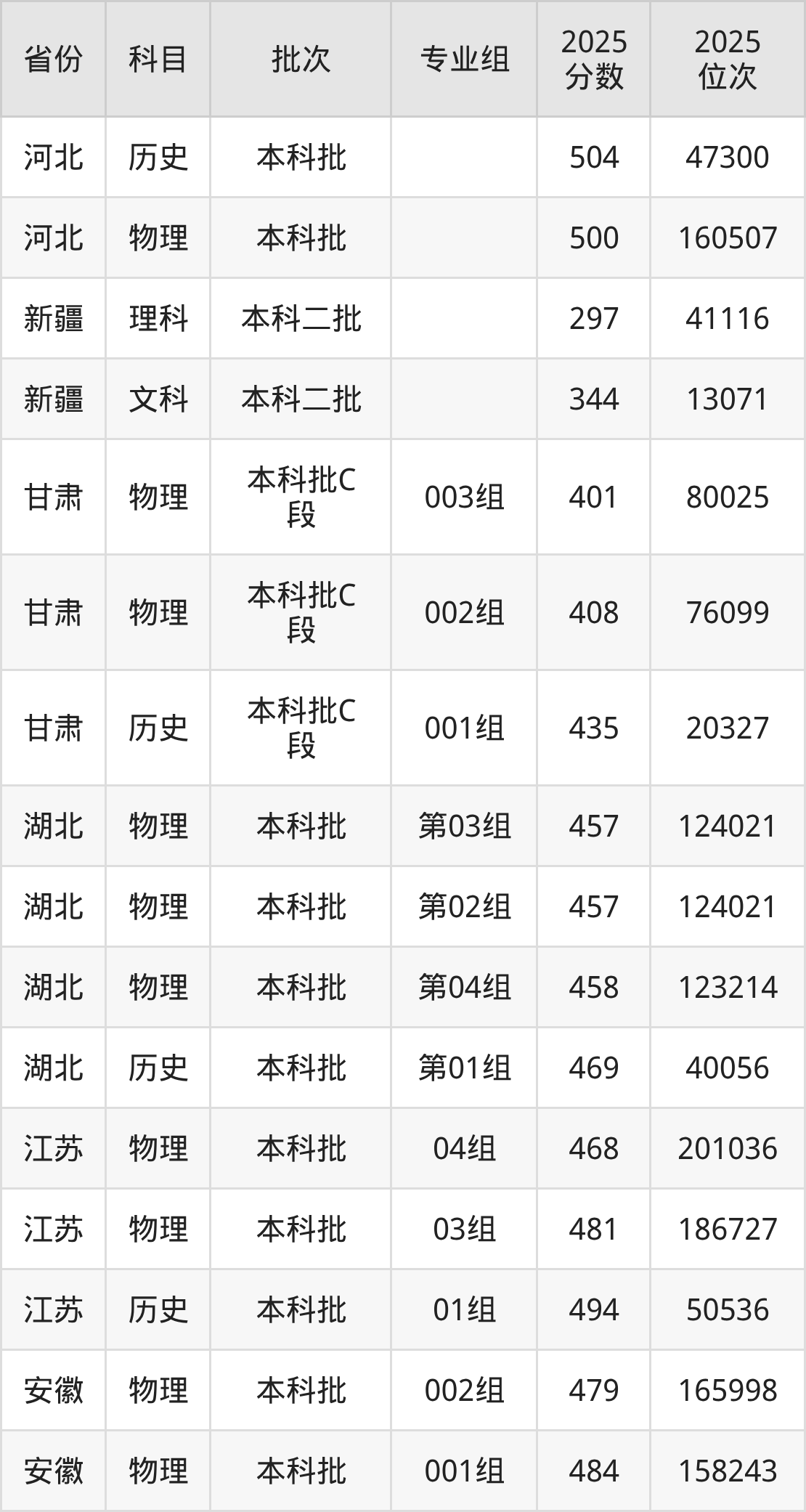 武汉东湖学院002组:2025年投档录取最低分为479分,录取最低位次为165998名。