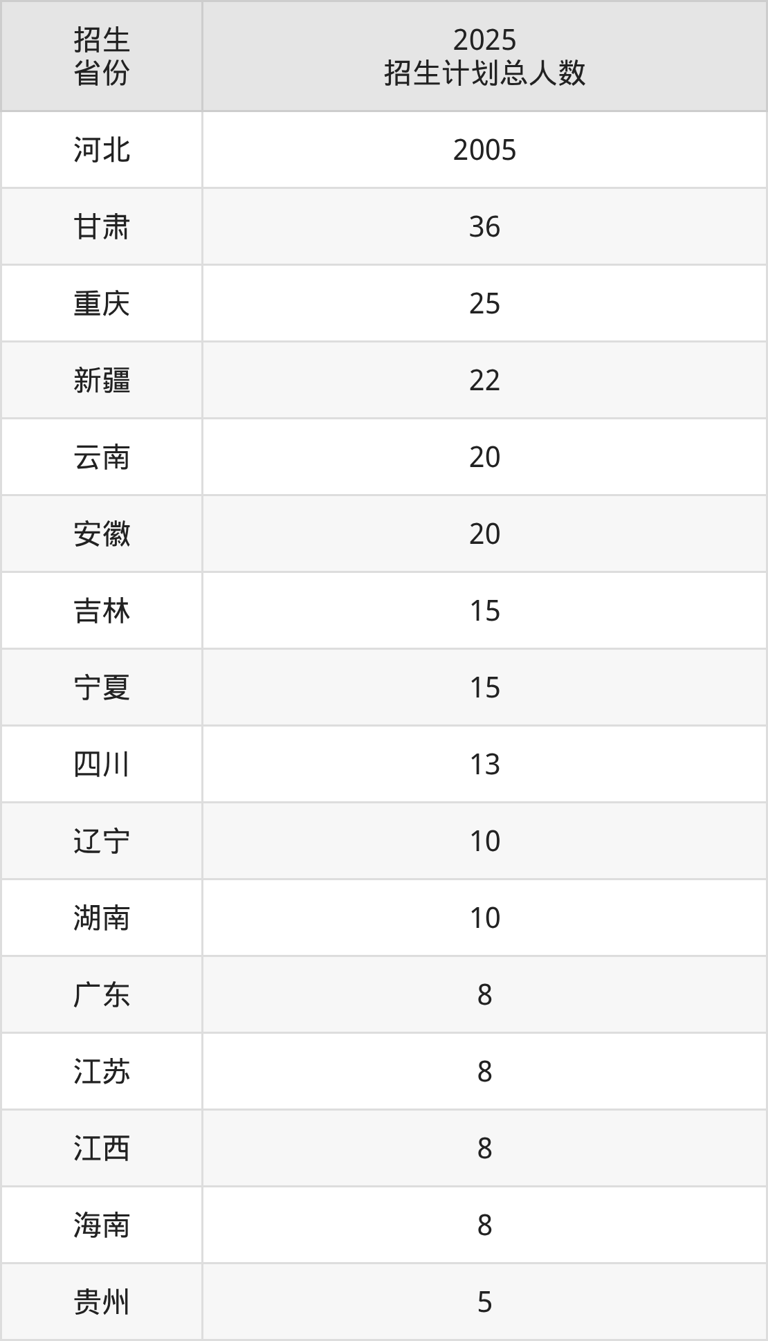 2025年秦皇岛职业技术学院面向全国22个省市开展专科招生;招生专业共28个,招生人数共2254人。2025年在河北省招生计划总人数是2005人,其中,秦皇岛职业技术学院在河北省招生人数最多的是大数据与会计。秦皇岛职业技术学院在各省具体招生人数情况如下表。
