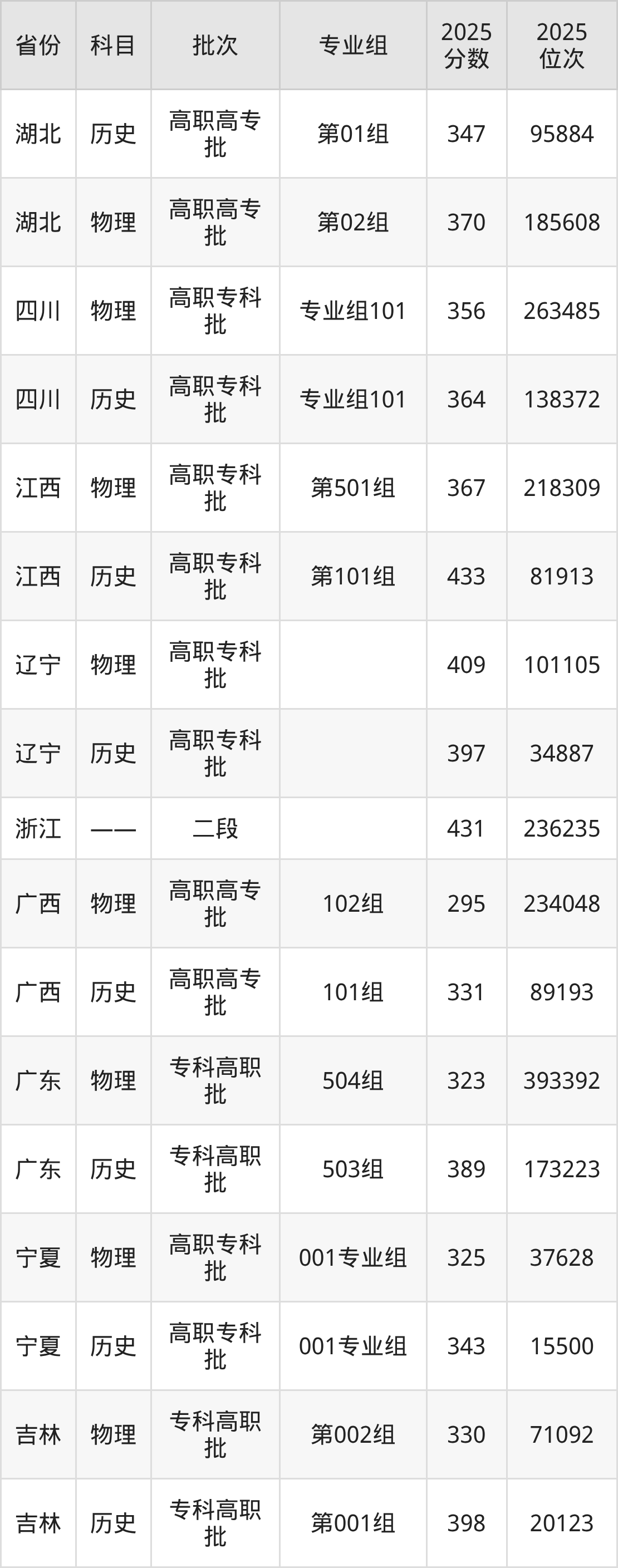普通类专科历史类最低304分,专科物理类最低329分