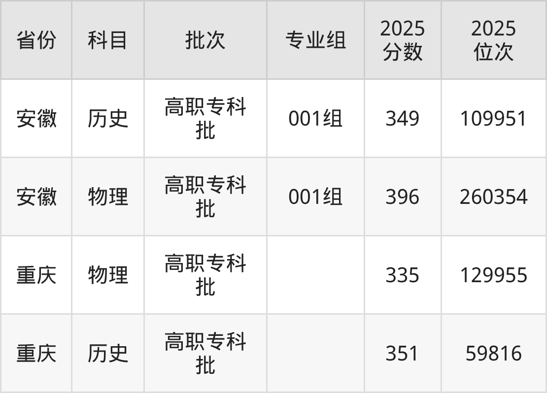 秦皇岛职业技术学院专业组101:2025年投档录取最低分为356分,录取最低位次为263485名。