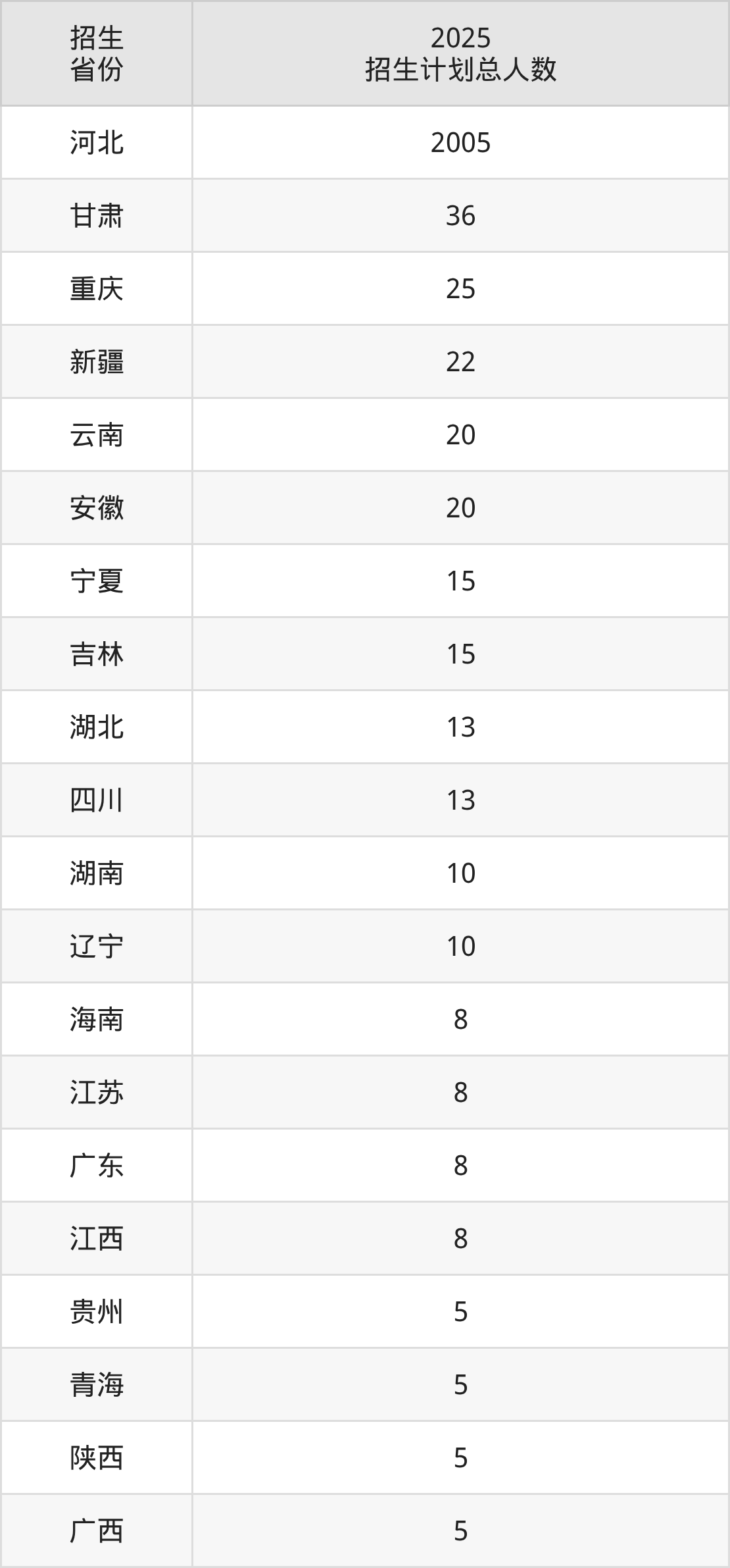 2025年秦皇岛职业技术学院面向全国24个省市开展专科招生;招生专业共28个,招生人数共2272人。2025年在河北省招生计划总人数是2005人,其中,秦皇岛职业技术学院在河北省招生人数最多的是大数据与会计。秦皇岛职业技术学院在各省具体招生人数情况如下表。