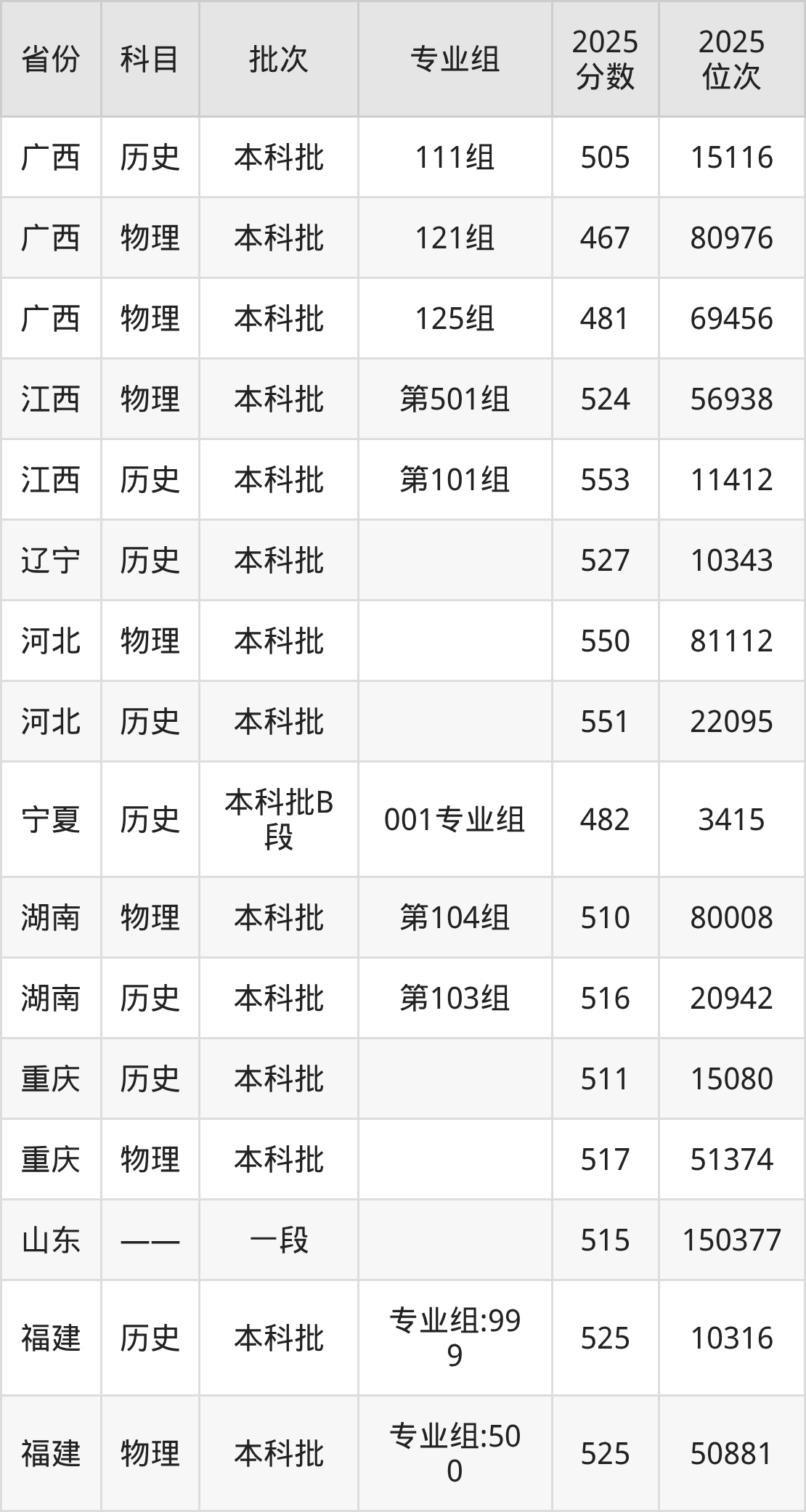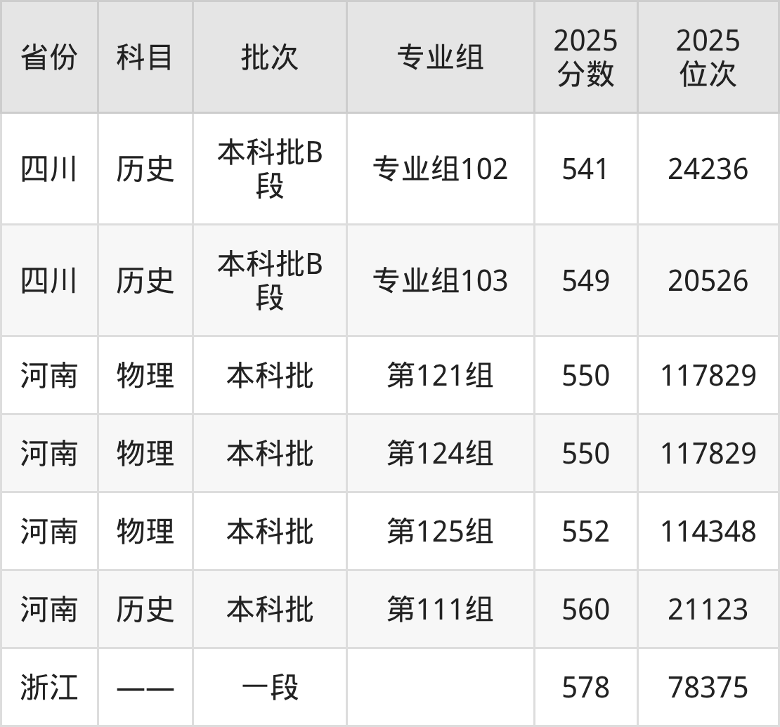2025年在本科历史类进行招生,各专业组分数线详情如下:
