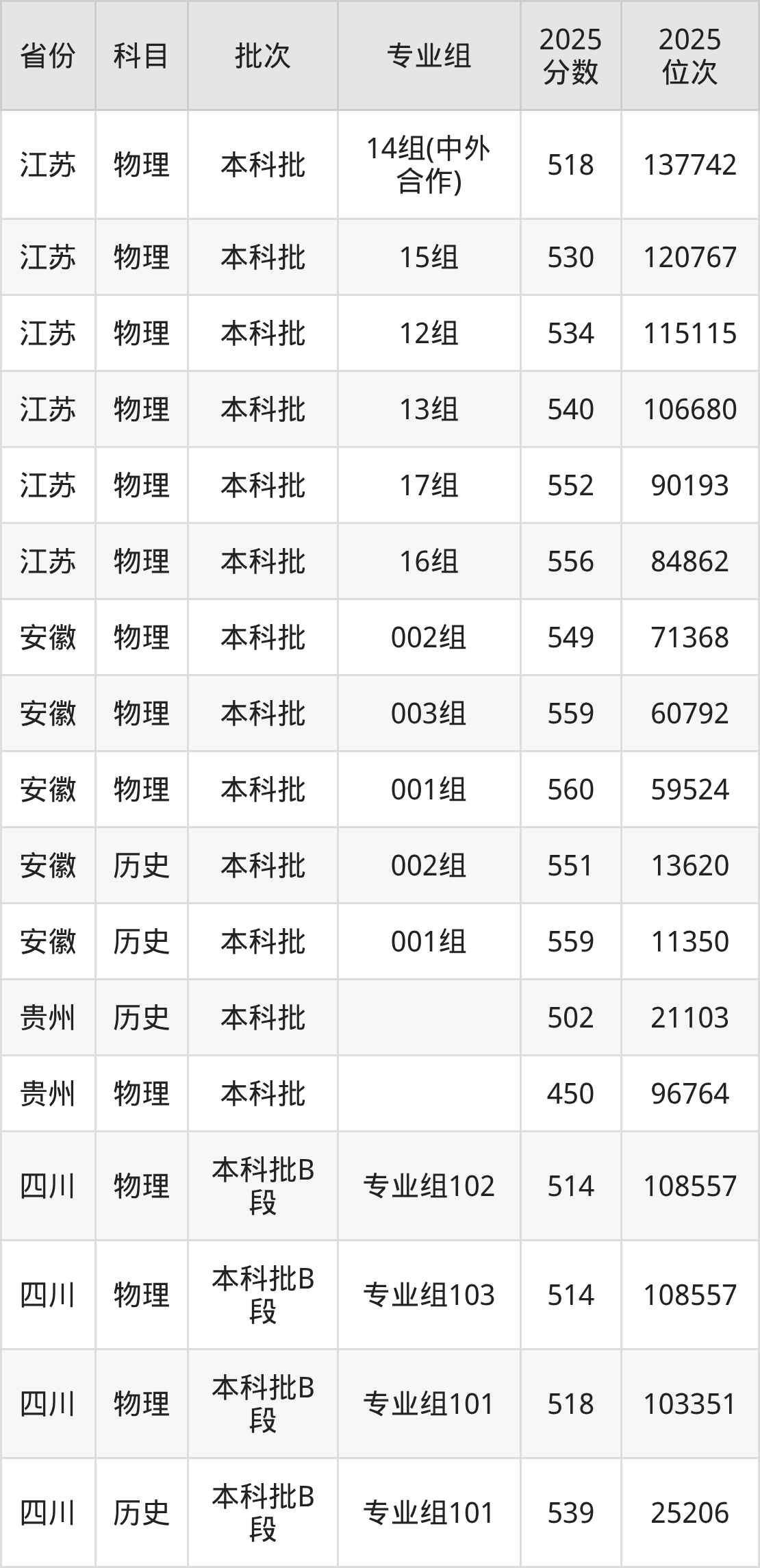 普通类本科物理类最低514分,本科历史类最低539分