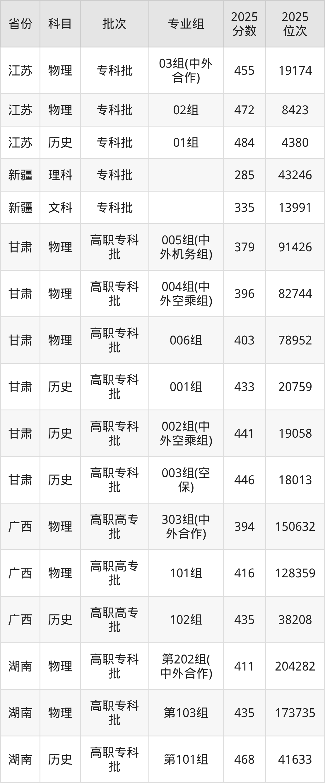 下面是2025年广州民航职业技术学院全国录取分数线一览表,请查阅。