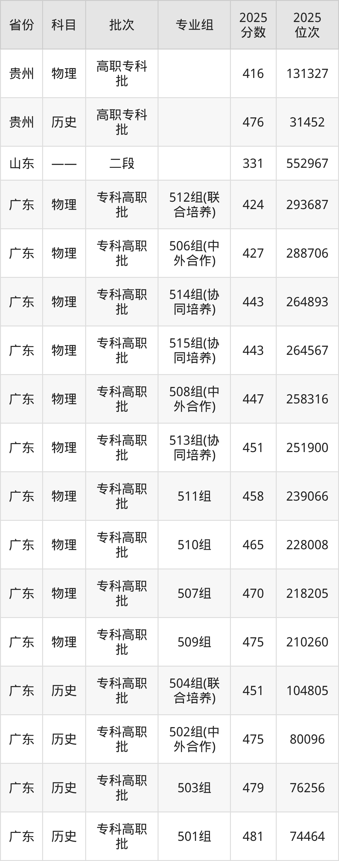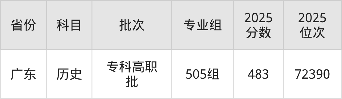 广州民航职业技术学院第001组:2025年投档录取最低分为419分,录取最低位次为7993名。