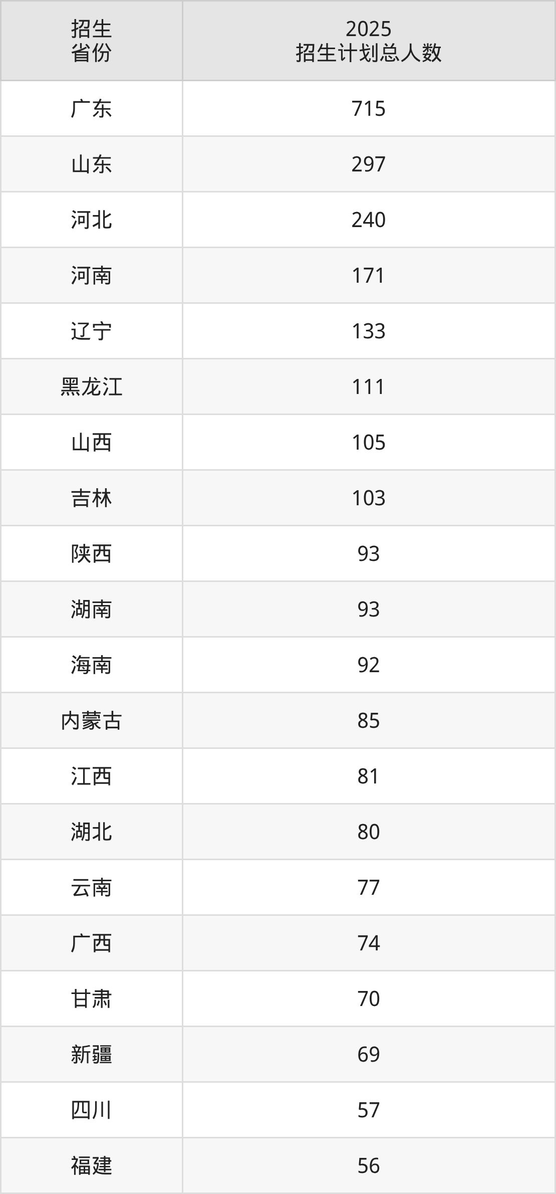 2025年广州民航职业技术学院面向全国27个省市开展专科招生;招生专业共26个,招生人数共2996人。2025年在广东省招生计划总人数是715人,其中,广州民航职业技术学院在广东省招生人数最多的是飞机机电设备维修。广州民航职业技术学院在各省具体招生人数情况如下表。