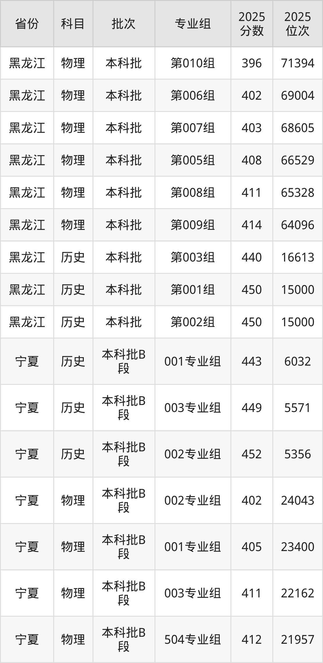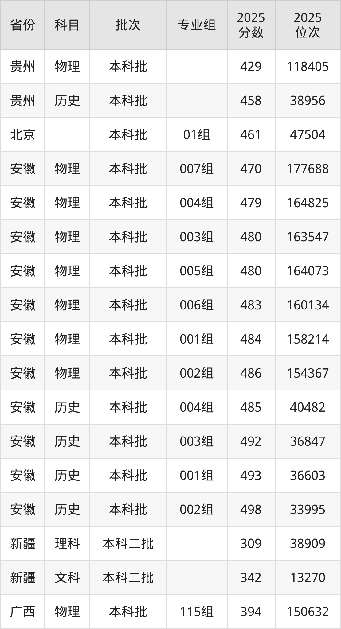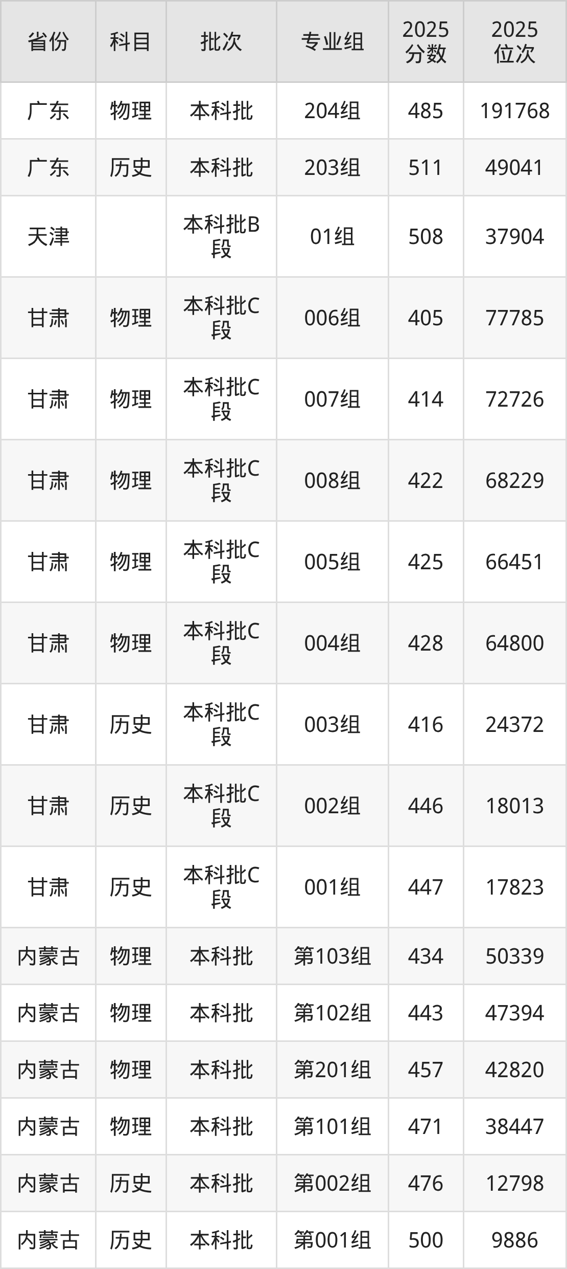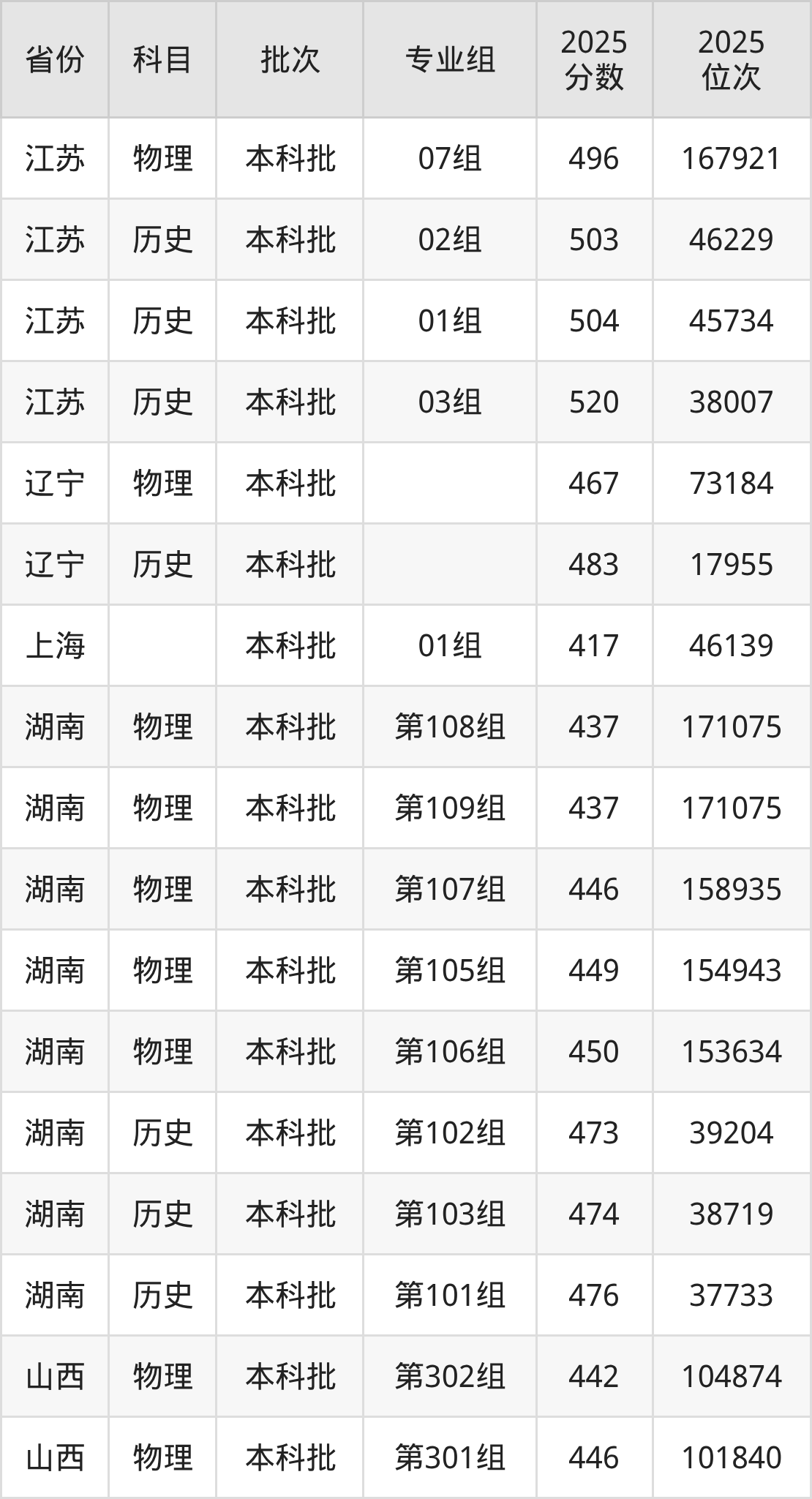 2025年投档录取最低分为467分,录取最低位次为73184名。