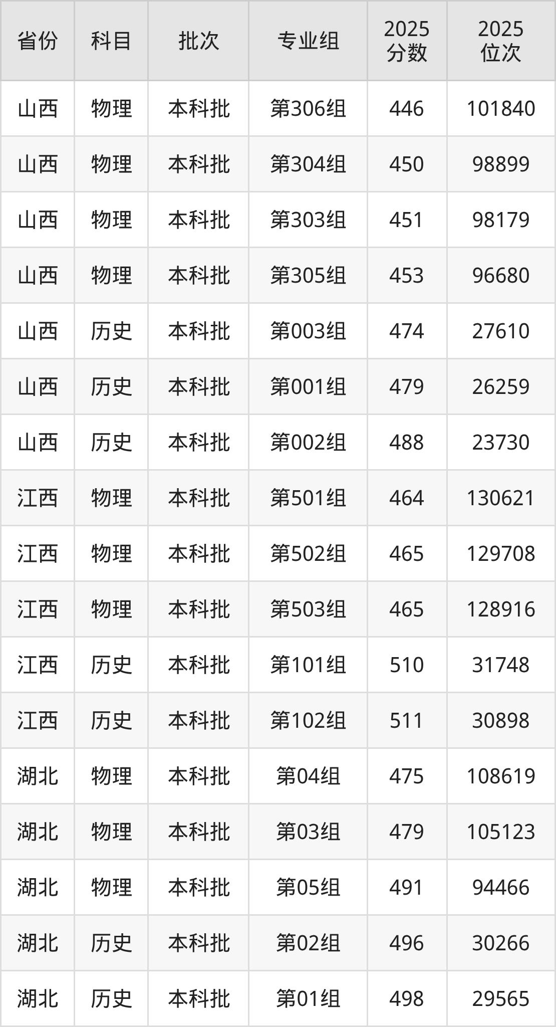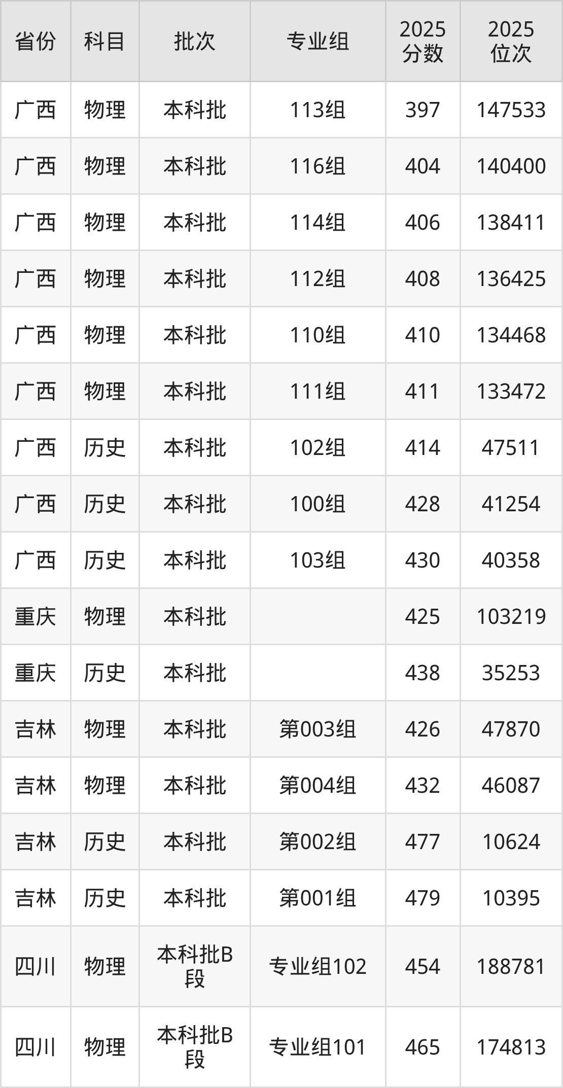 2025年投档录取最低分为425分,录取最低位次为103219名。
