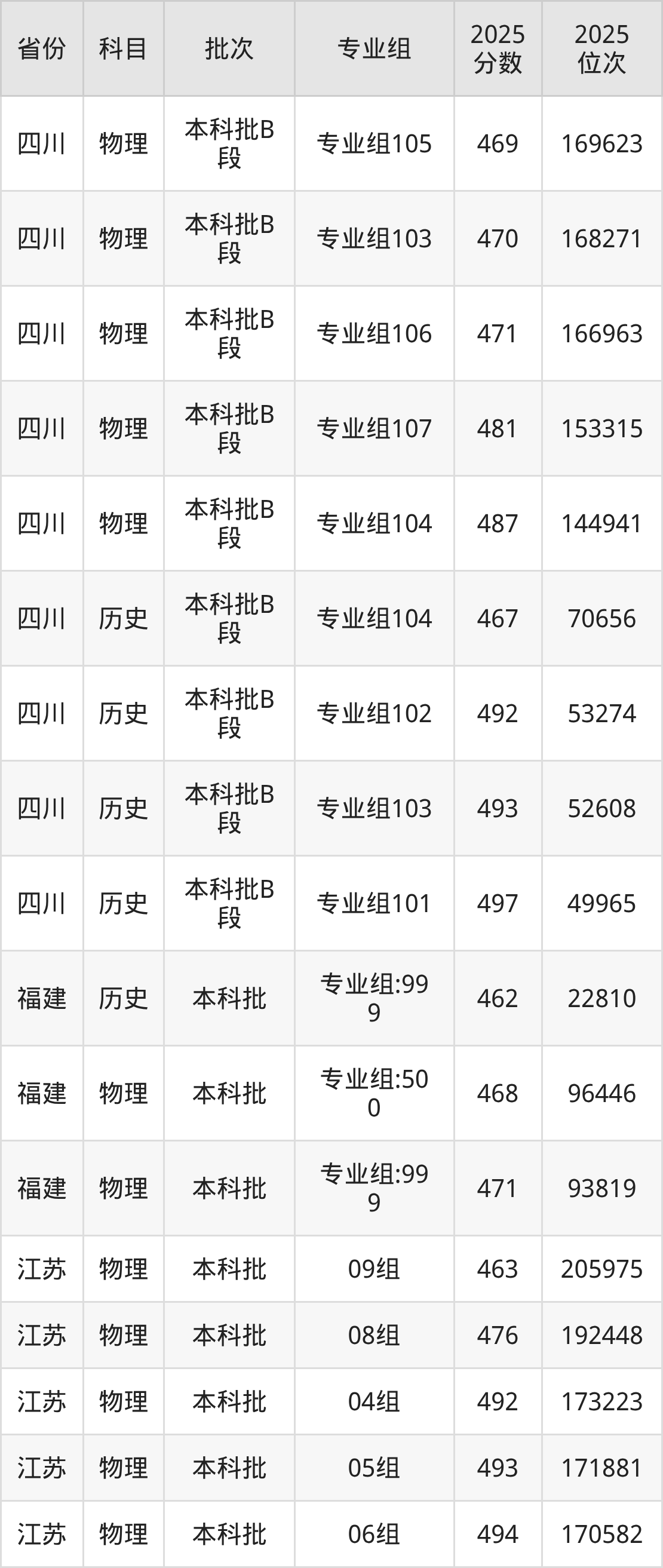 西南财经大学天府学院第001组:2025年投档录取最低分为479分,录取最低位次为26259名。