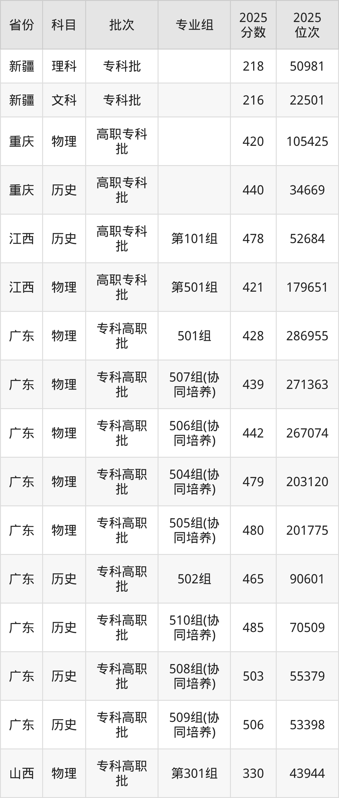 下面是2025年广东工贸职业技术学院全国录取分数线一览表,请查阅。