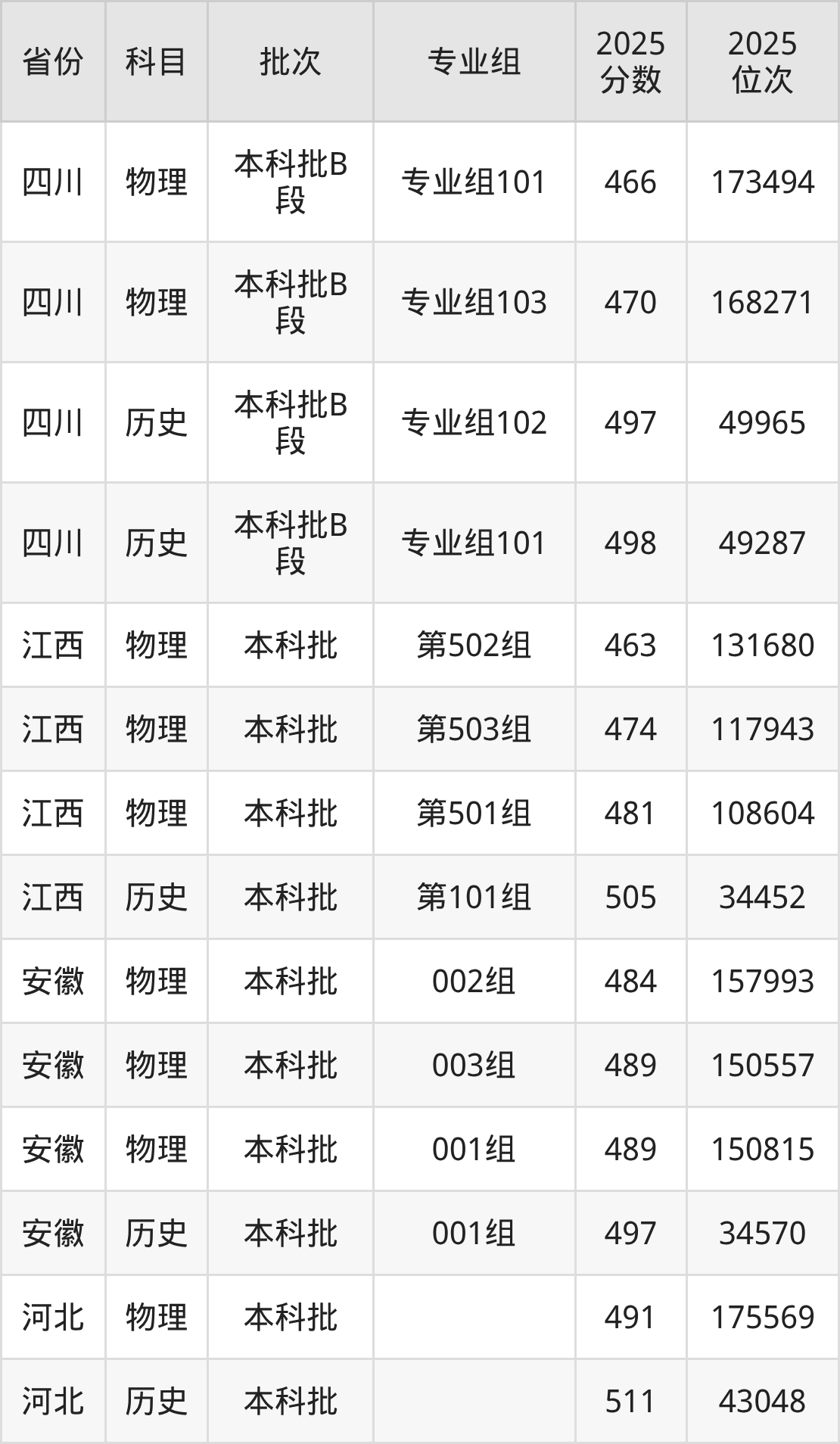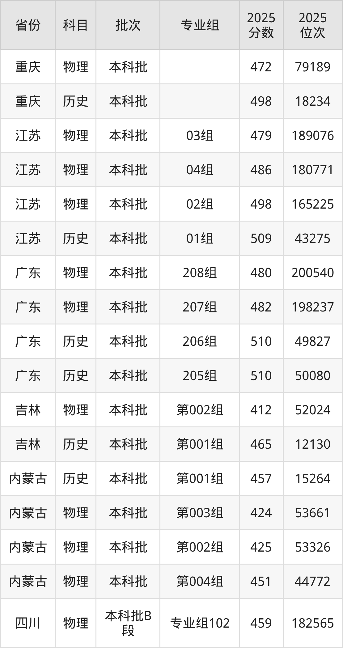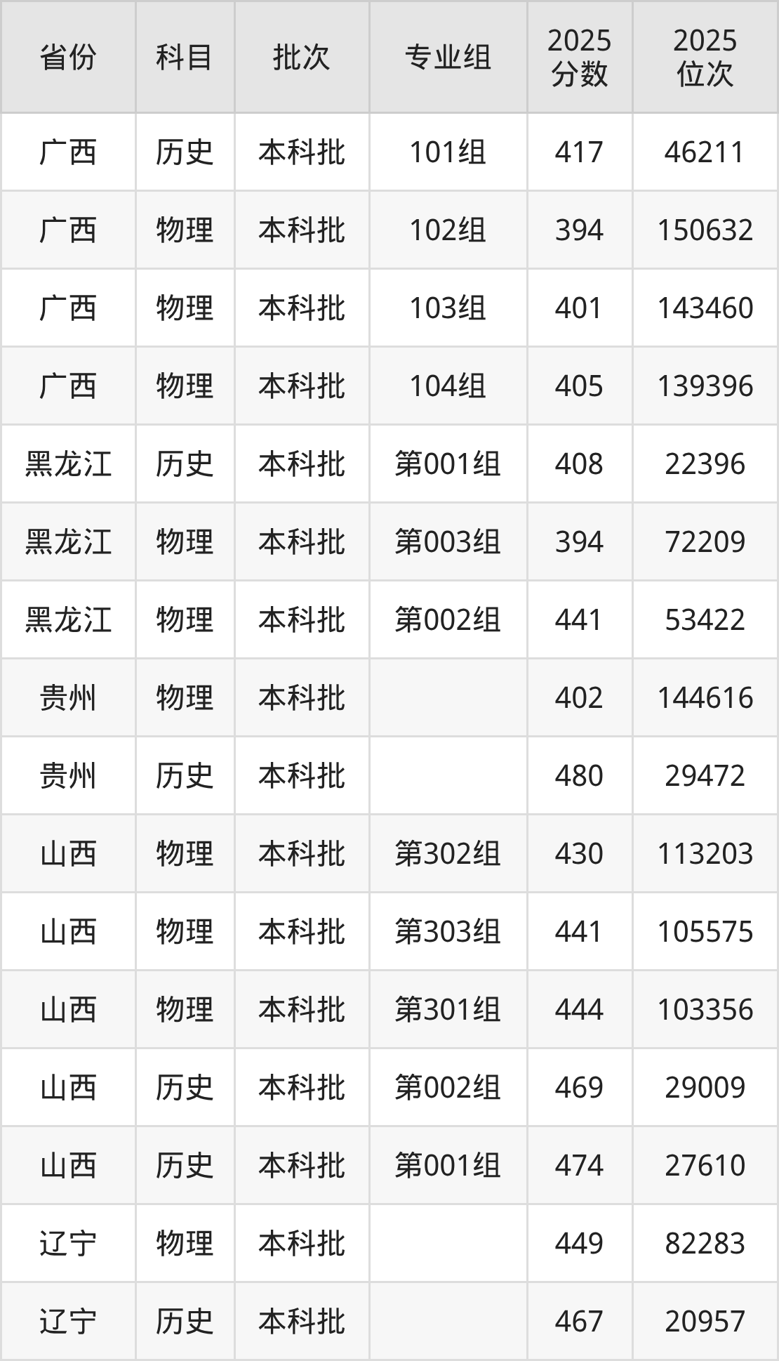 普通类本科物理类最低449分,本科历史类最低467分