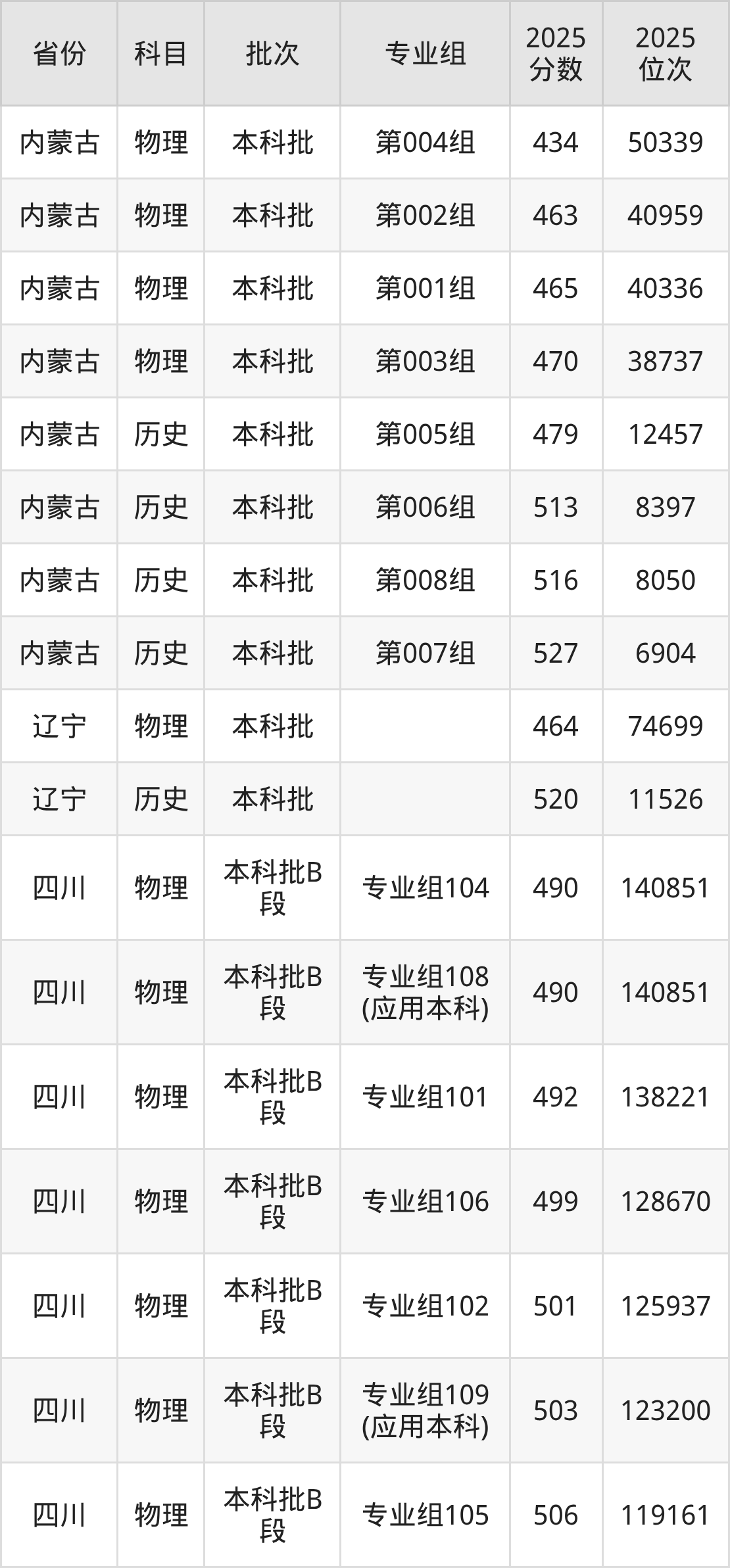 绵阳师范学院专业组102:2025年投档录取最低分为543分,录取最低位次为23302名。