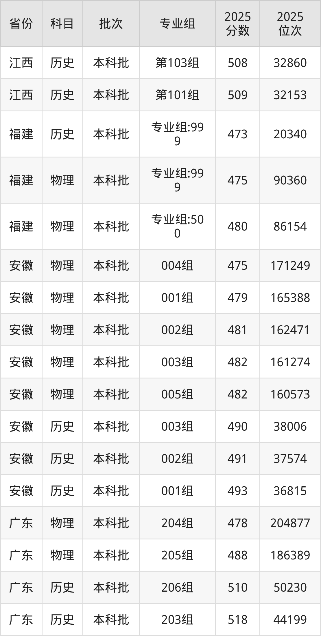 福建师范大学协和学院004组:2025年投档录取最低分为475分,录取最低位次为171249名。
