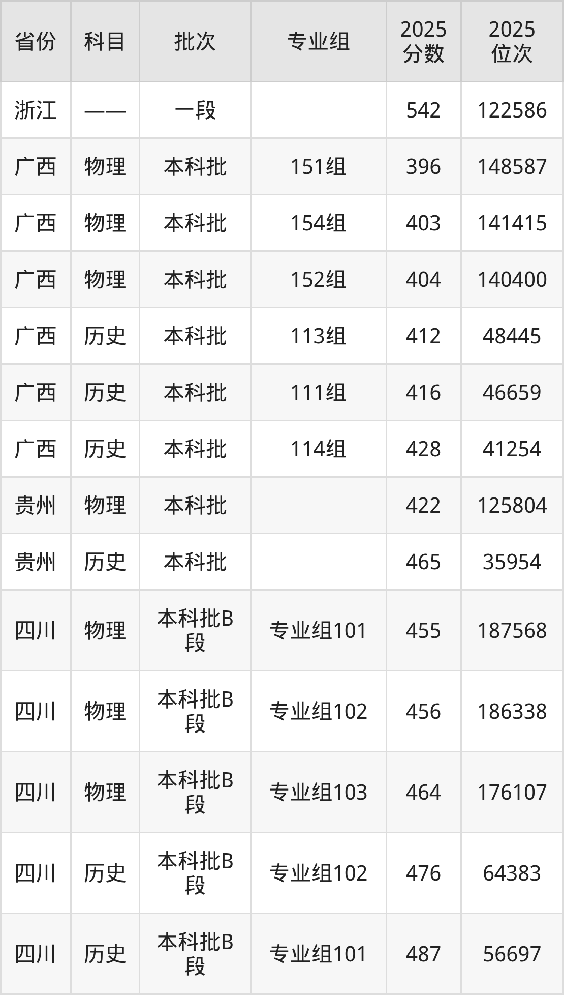 2025年投档录取最低分为422分,录取最低位次为125804名。