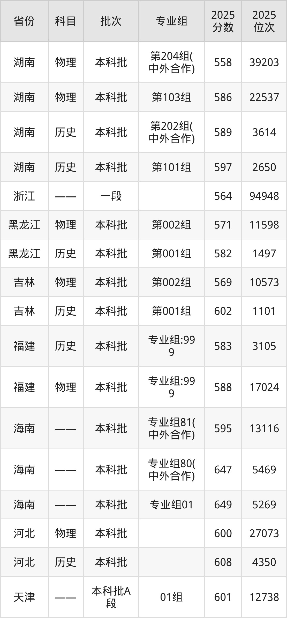 南京审计大学第204组(中外合作办学或国际项目):2025年投档录取最低分为558分,录取最低位次为39203名。