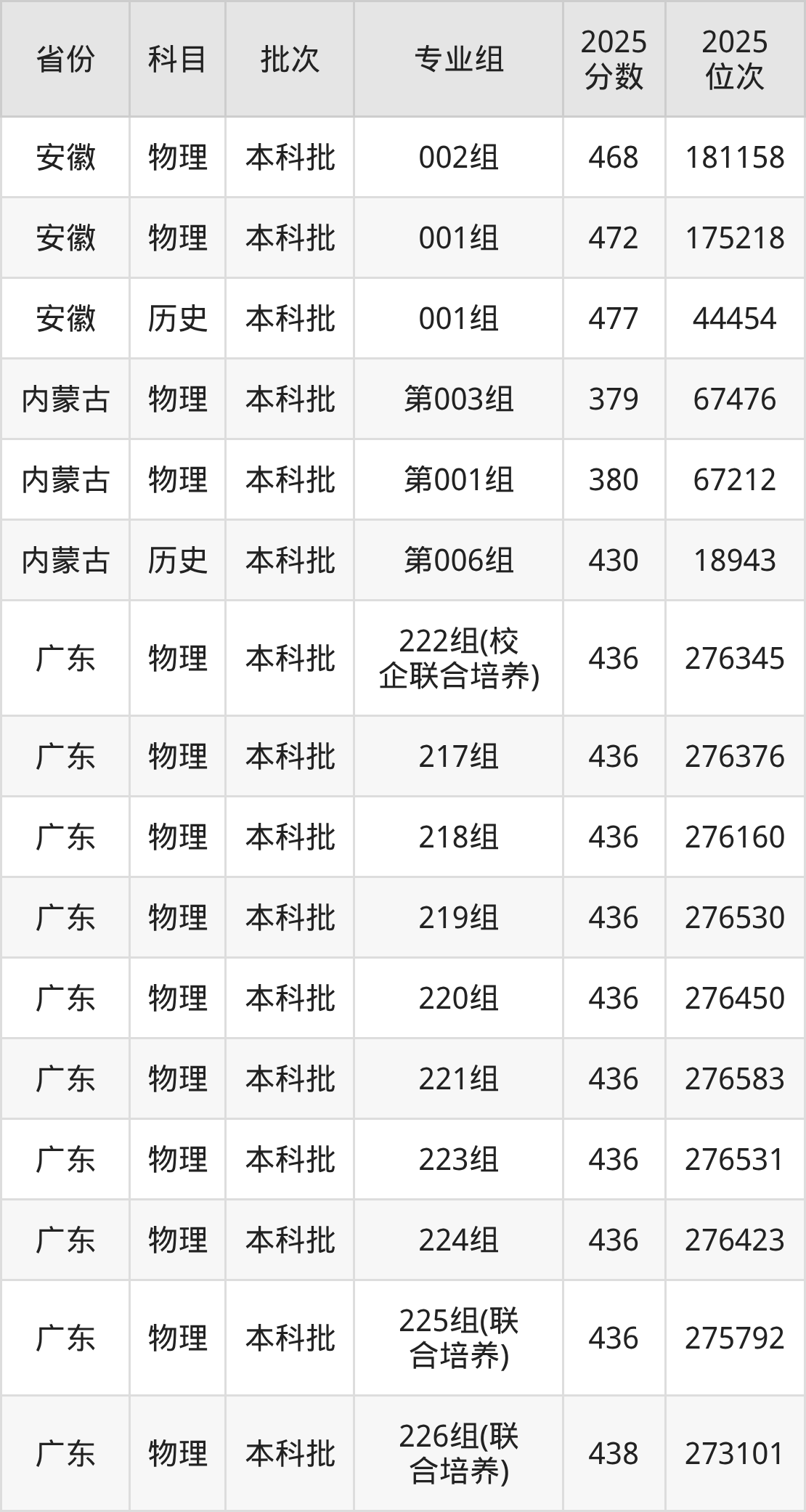 广州应用科技学院225组(联合培养):2025年投档录取最低分为436分,录取最低位次为275792名。