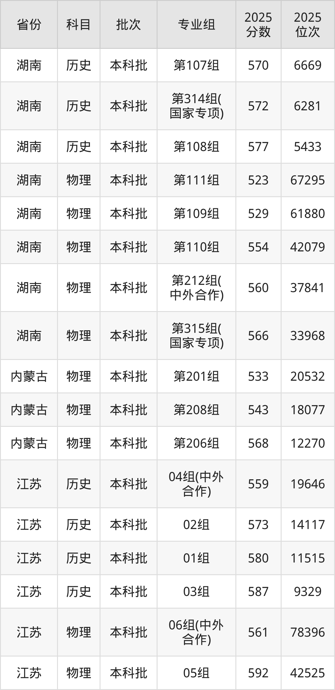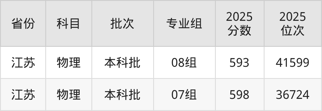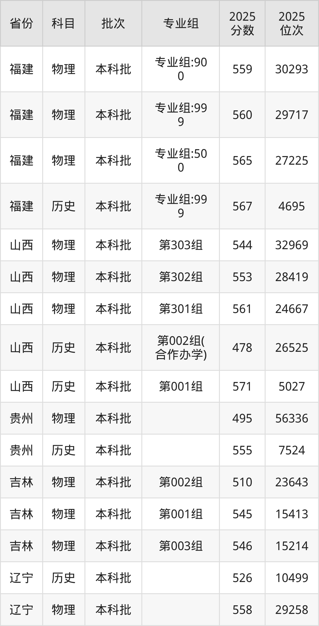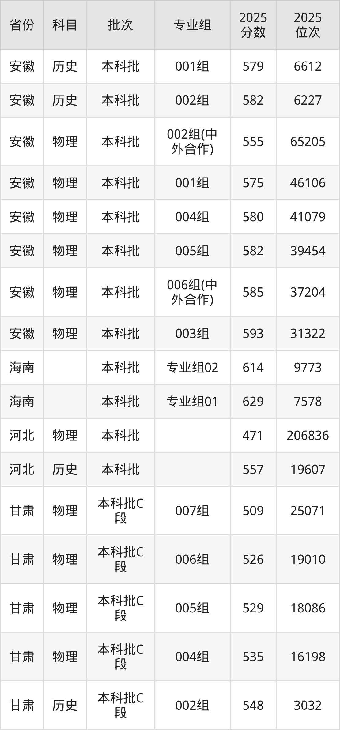 2025年在本科物理类进行招生,各专业组分数线详情如下:
