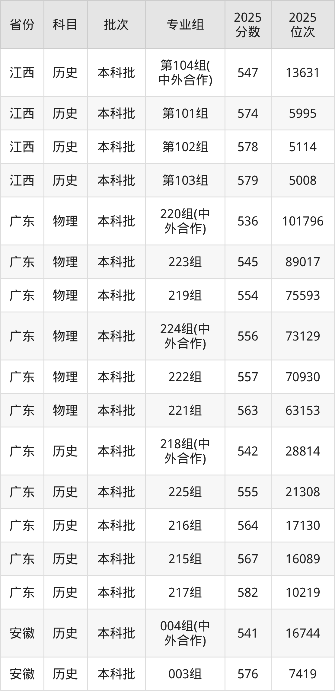 浙江师范大学04组(中外合作办学):2025年投档录取最低分为559分,录取最低位次为19646名。