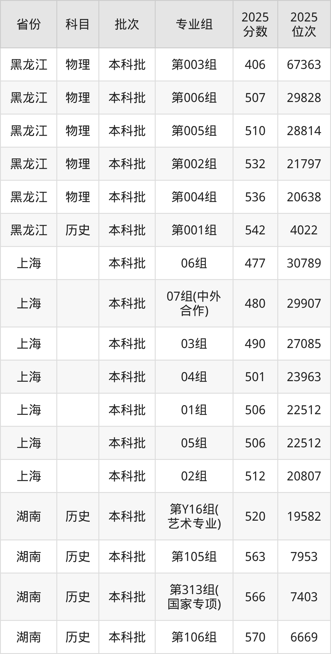 浙江师范大学第001组:2025年投档录取最低分为542分,录取最低位次为4022名。