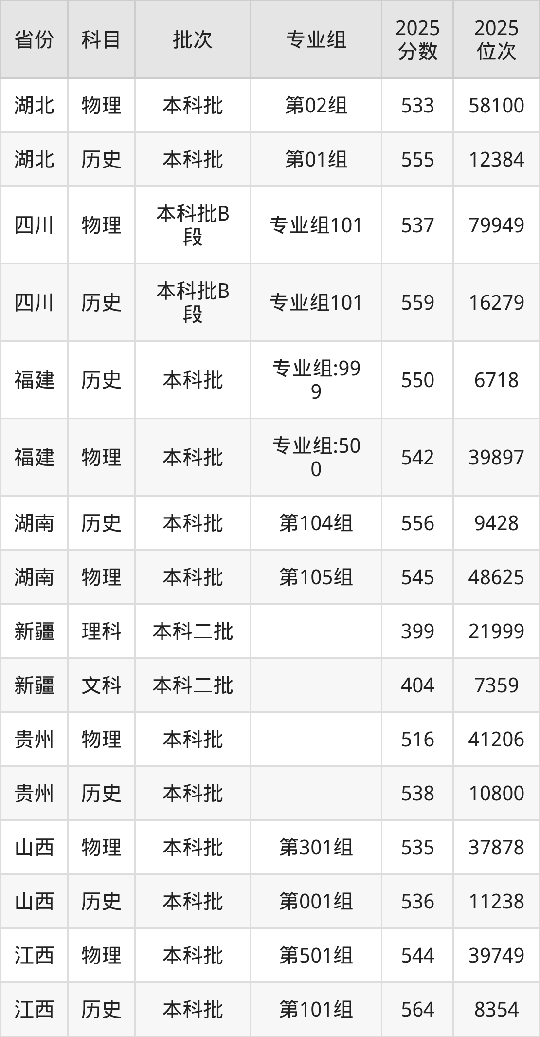 2025年投档录取最低分为528分,录取最低位次为11193名。
