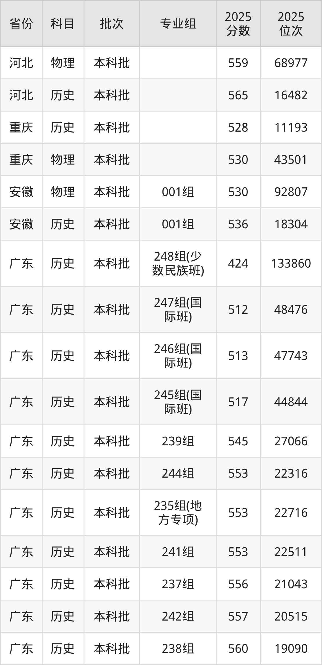 广东技术师范大学242组:2025年投档录取最低分为557分,录取最低位次为20515名。