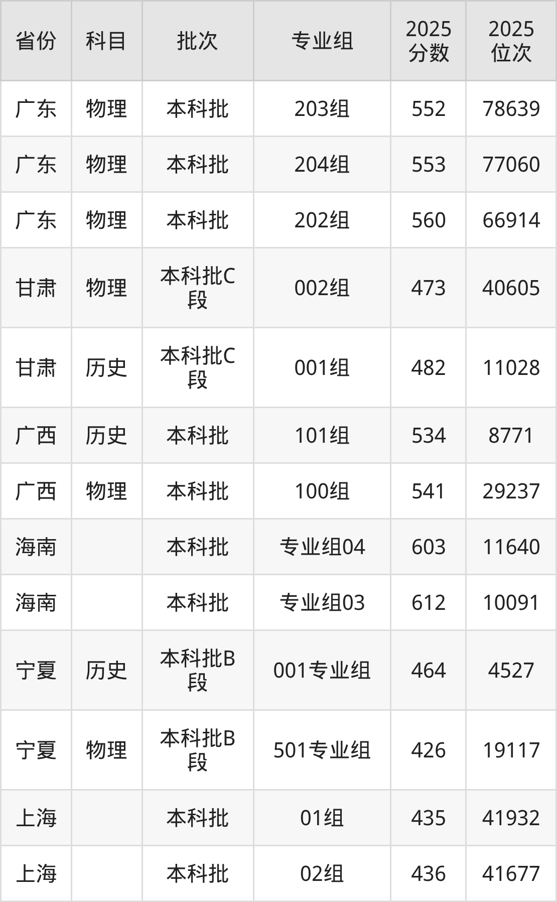 广东技术师范大学501专业组:2025年投档录取最低分为426分,录取最低位次为19117名。