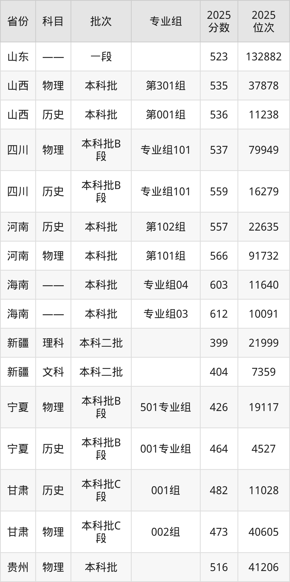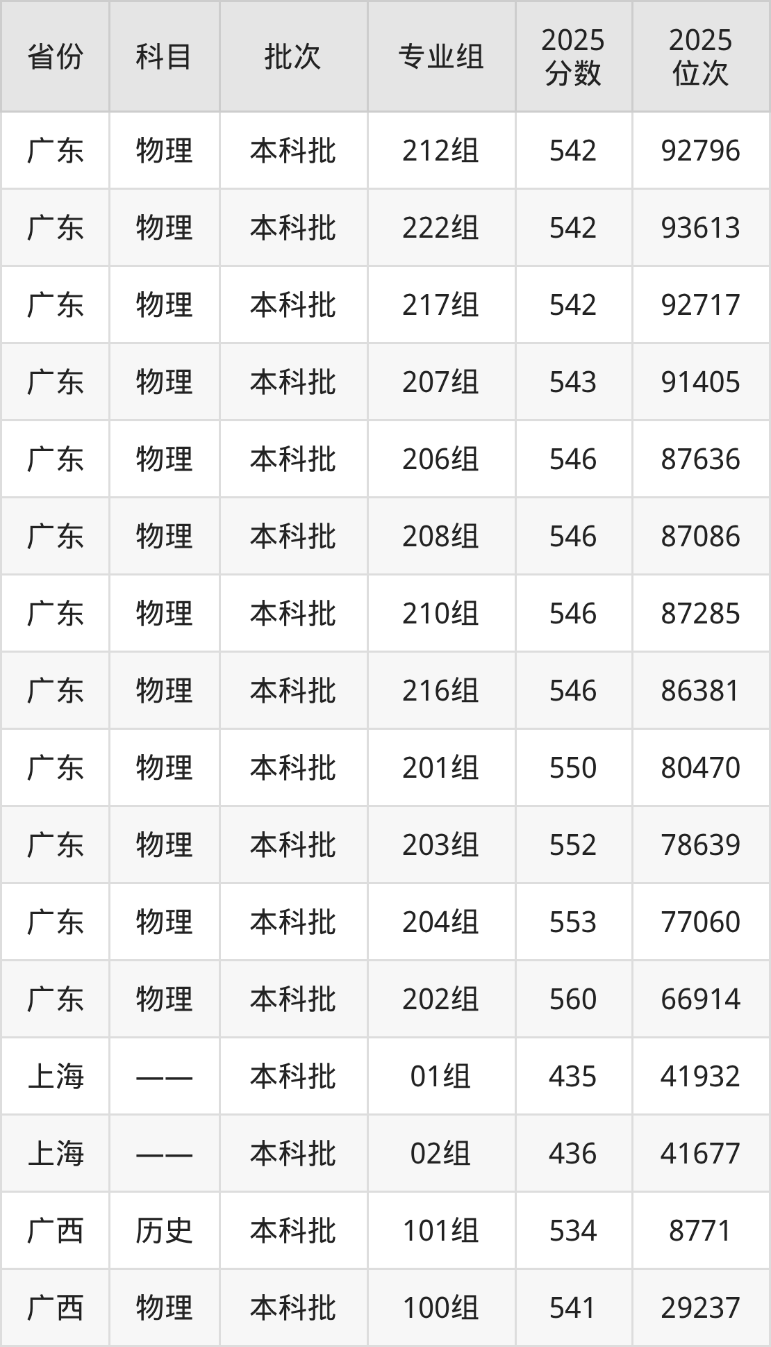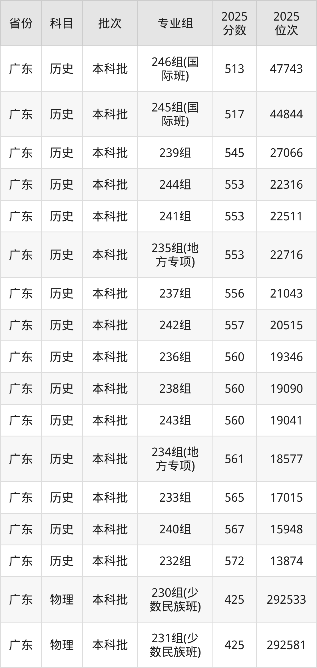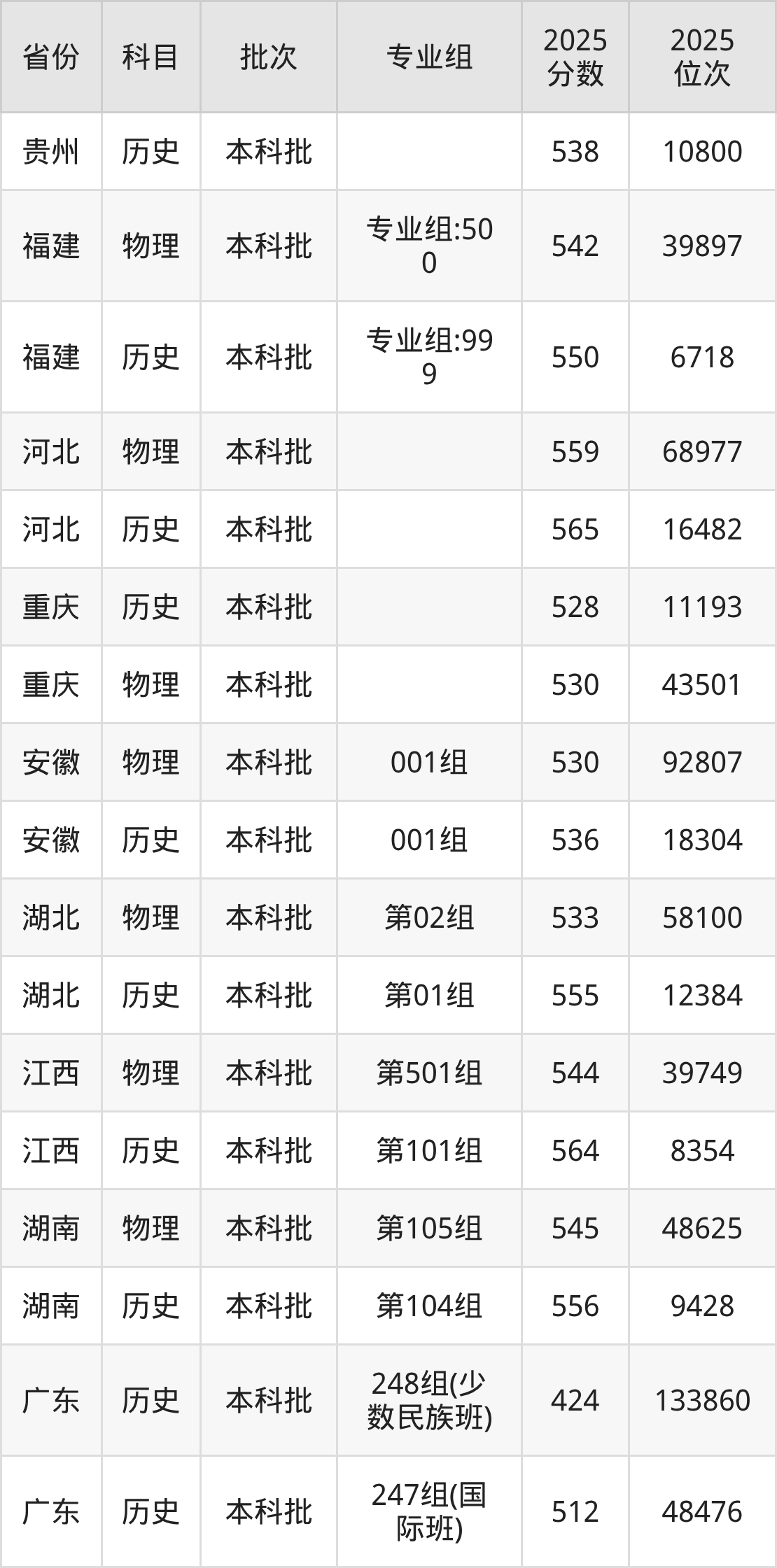 普通类本科物理类最低545分,本科历史类最低556分
