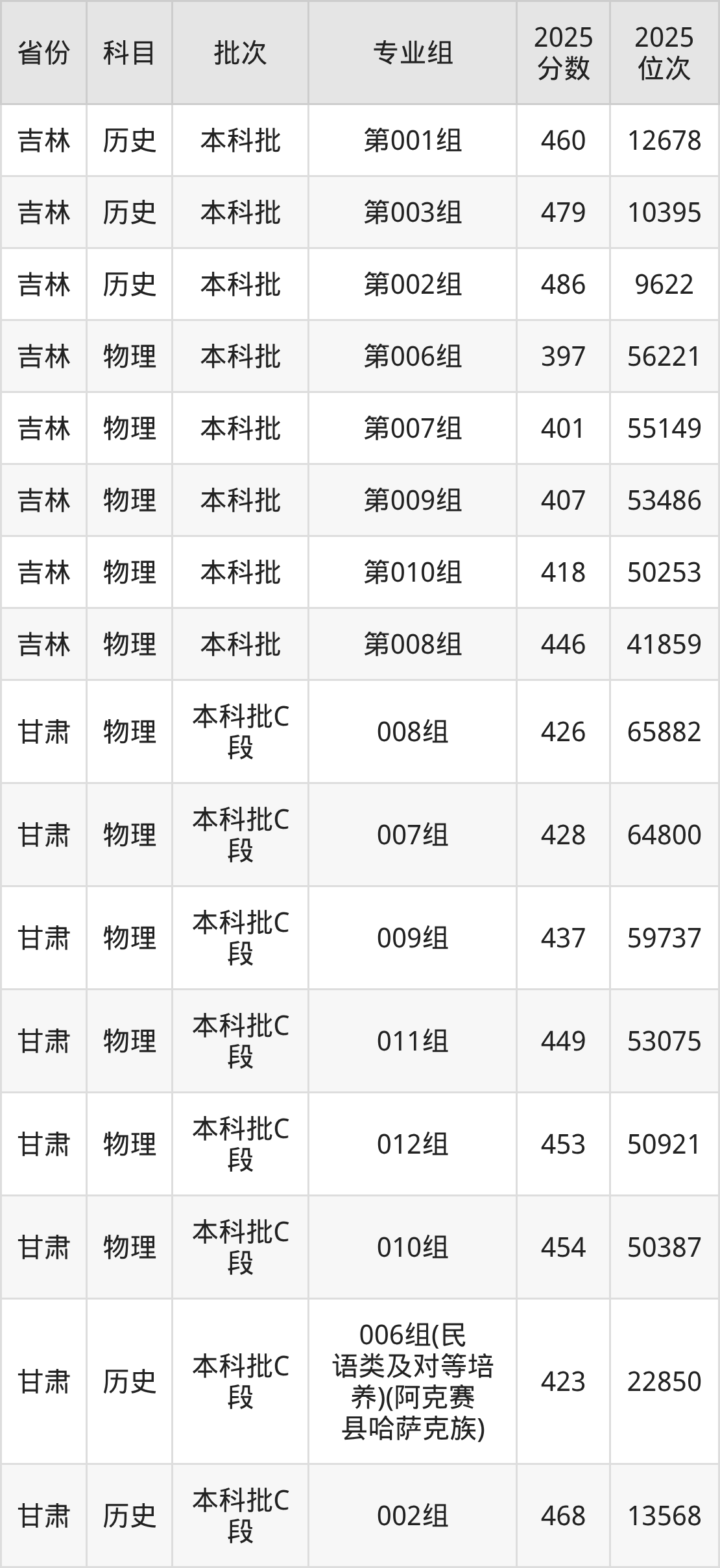 喀什大学第001组:2025年投档录取最低分为487分,录取最低位次为11442名。