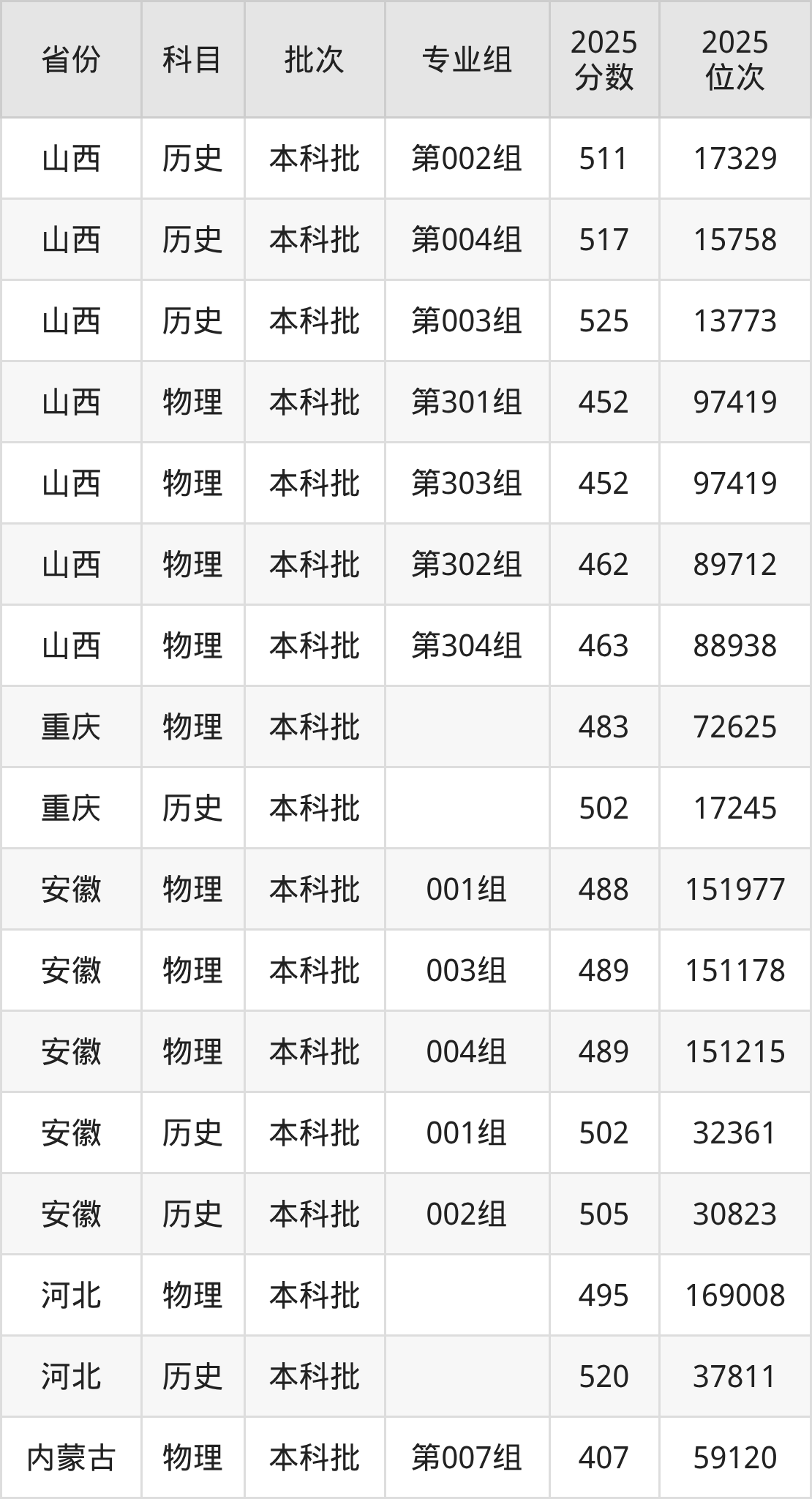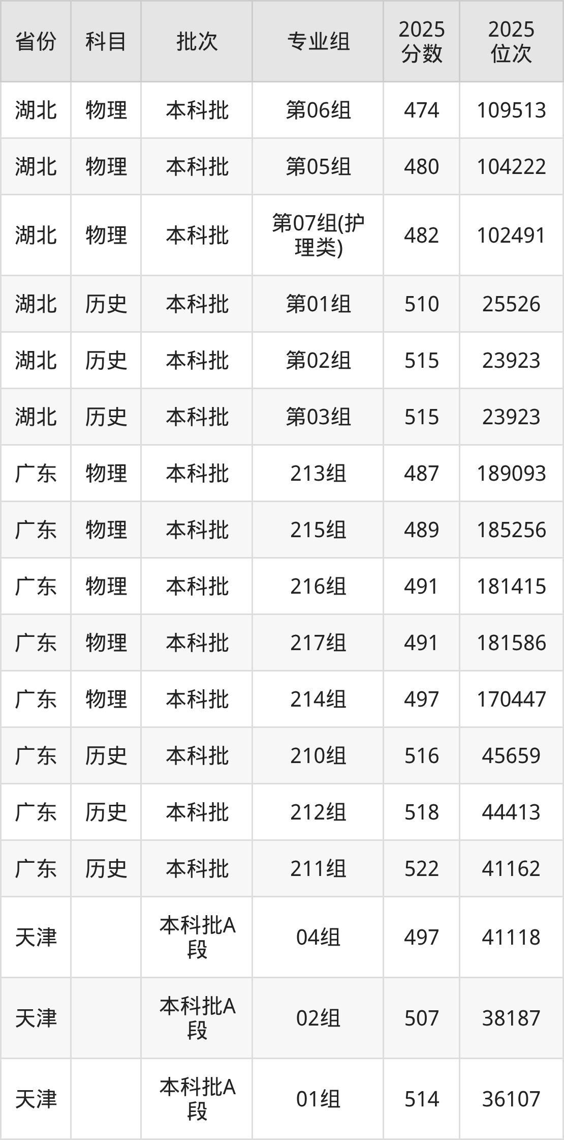 普通类本科物理类最低461分,本科历史类最低514分