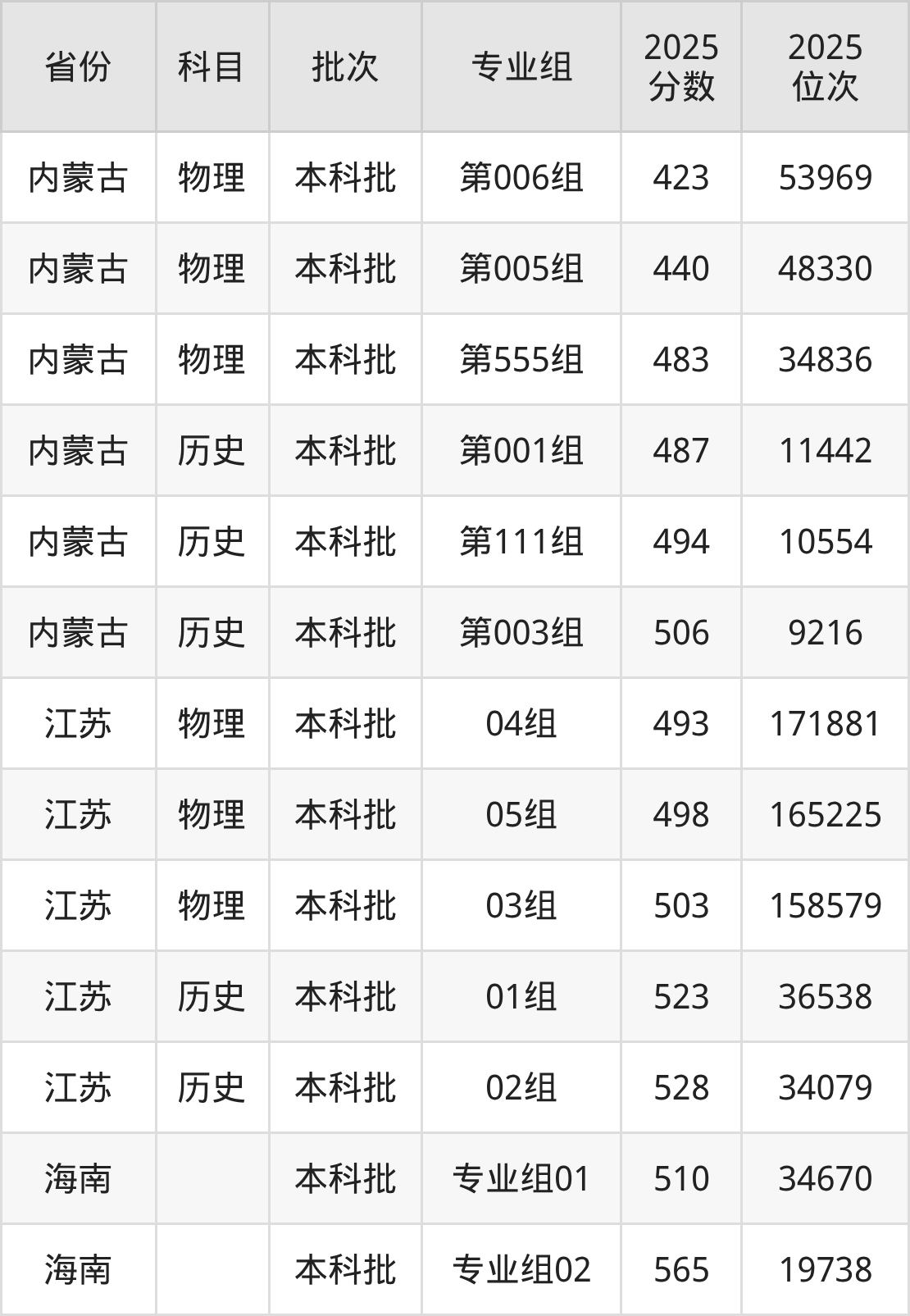 普通类本科物理类最低493分,本科历史类最低523分