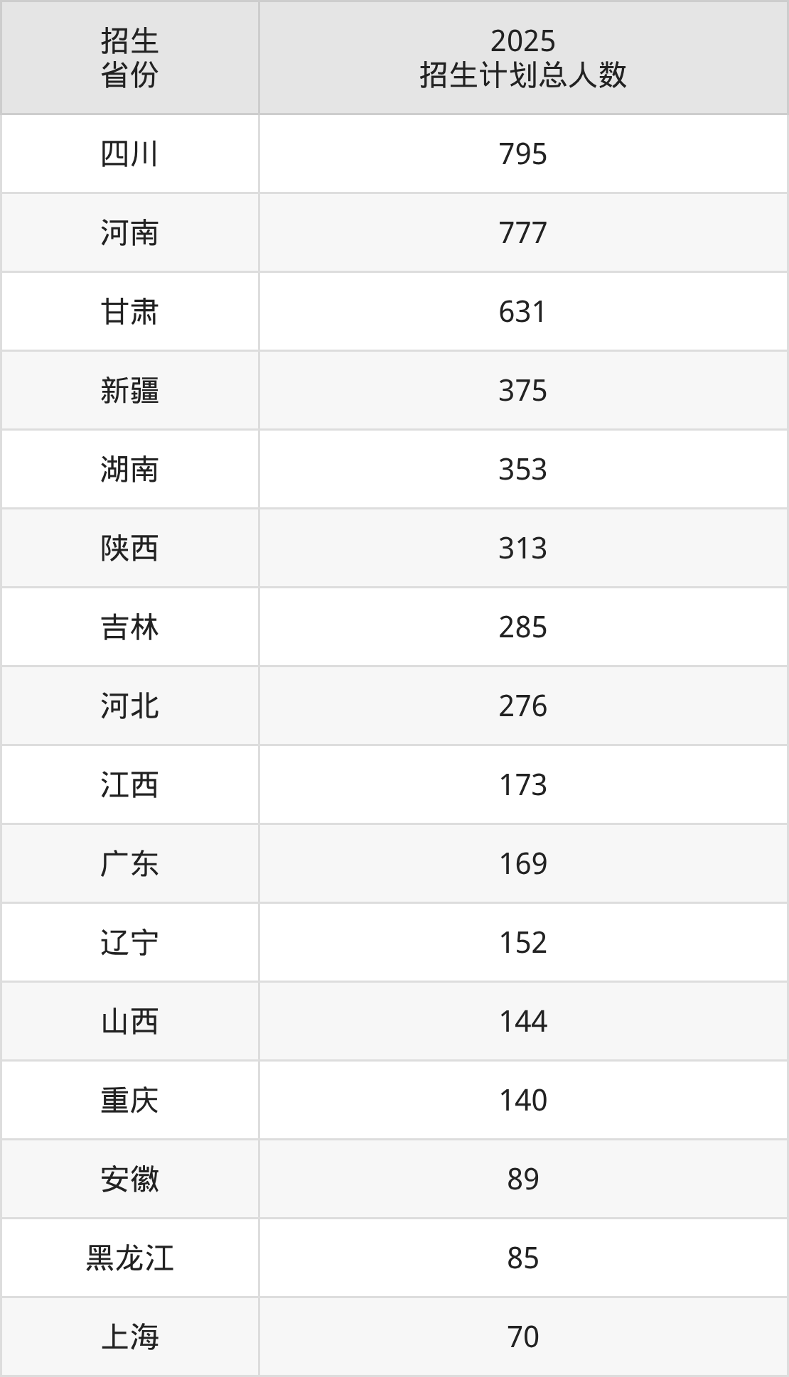 2025年喀什大学面向全国28个省市开展本科招生;招生专业共61个,招生人数共5251人。2025年在新疆维吾尔自治区招生计划总人数是375人,其中,喀什大学在新疆维吾尔自治区招生人数最多的是中国少数民族语言文学。喀什大学在各省具体招生人数情况如下表。