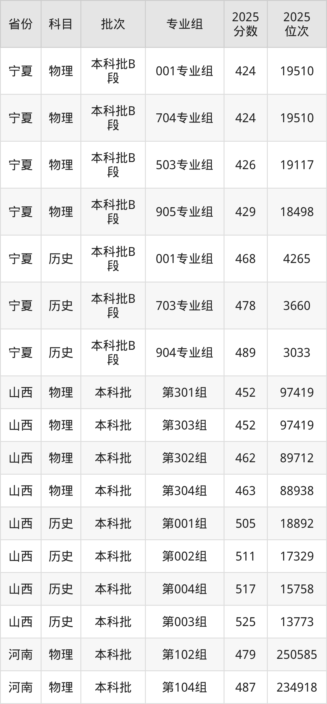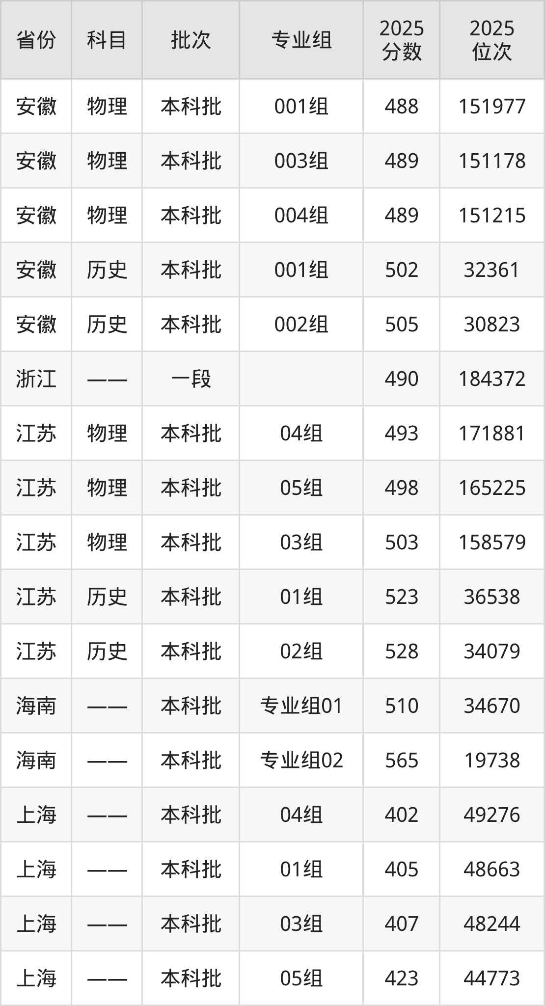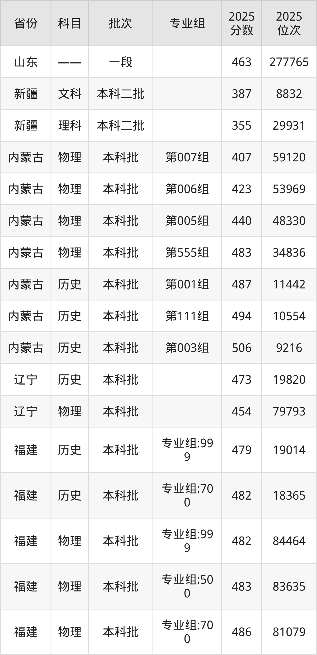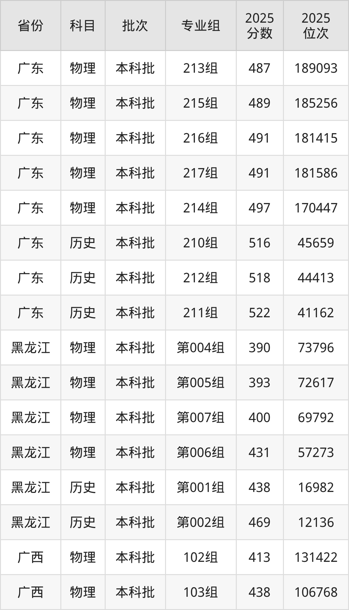 2025年投档录取最低分为495分,录取最低位次为169008名。