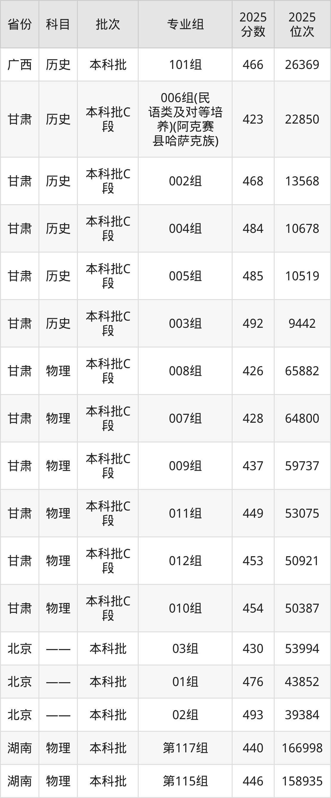 喀什大学第08组:2025年投档录取最低分为473分,录取最低位次为110381名。