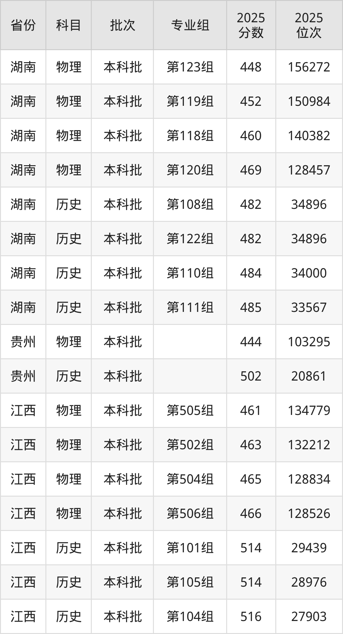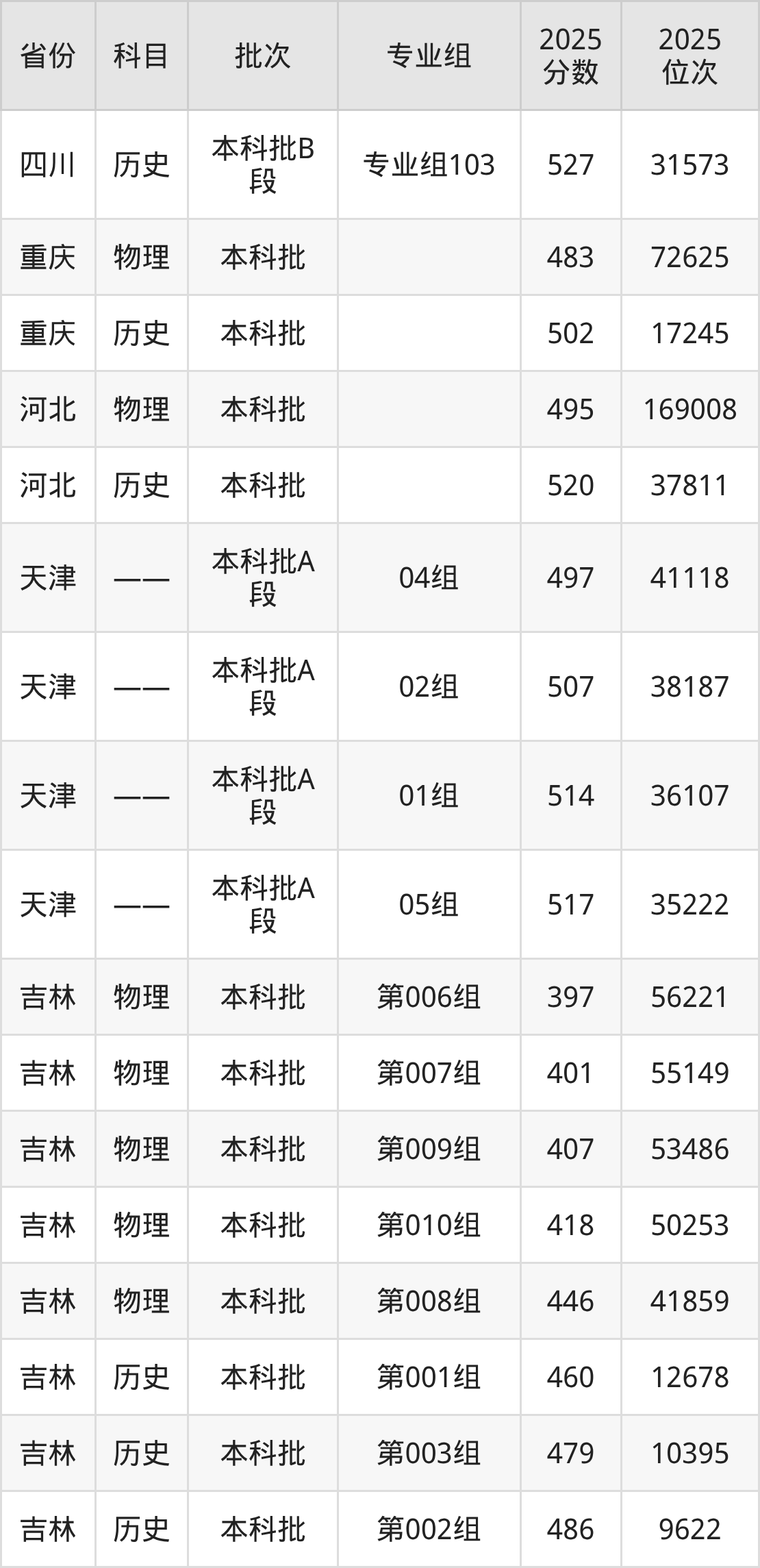 2025年投档录取最低分为502分,录取最低位次为17245名。