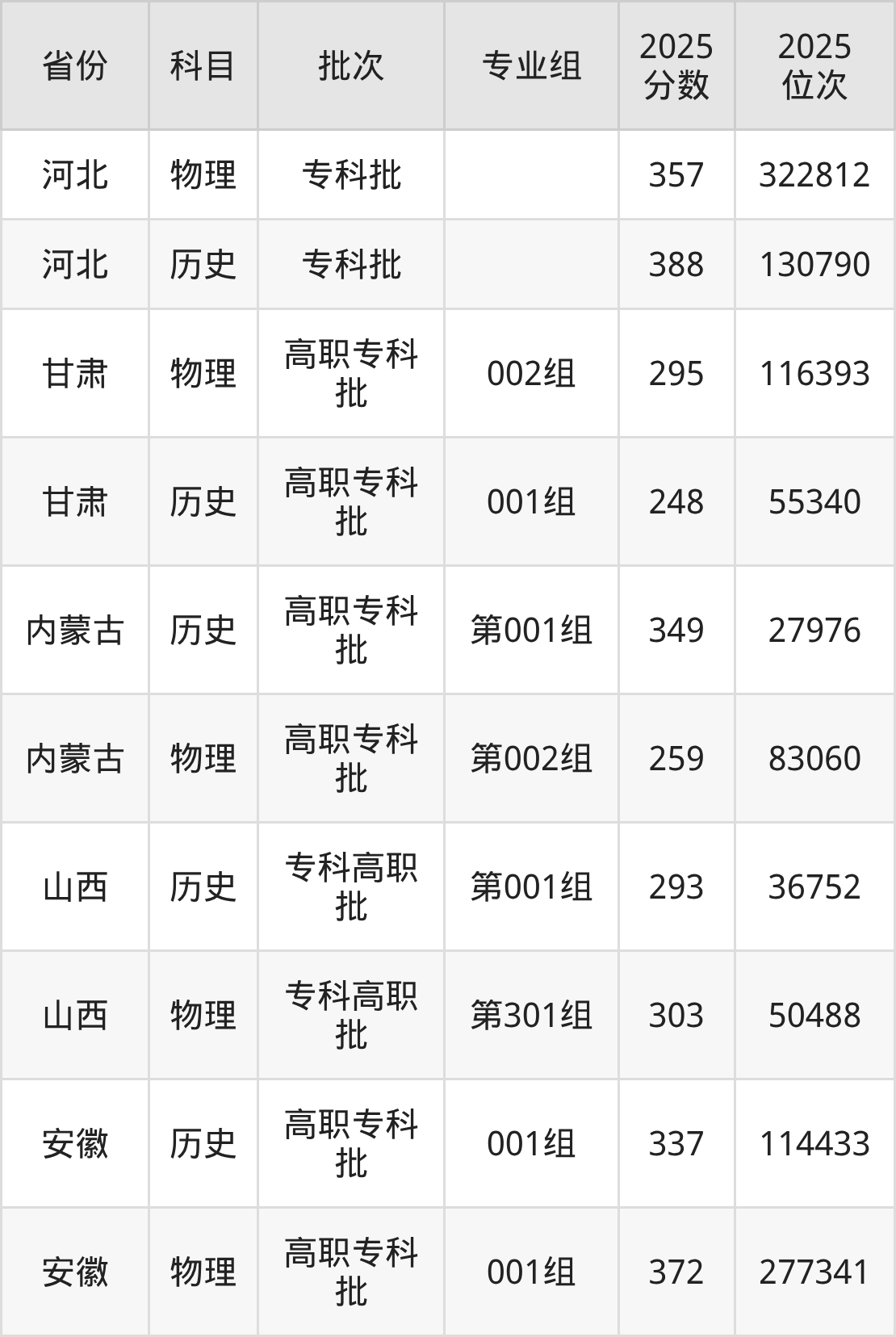 下面是2025年河北劳动关系职业学院全国录取分数线一览表,请查阅。
