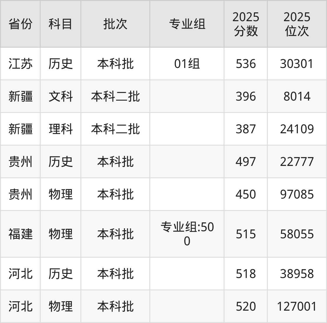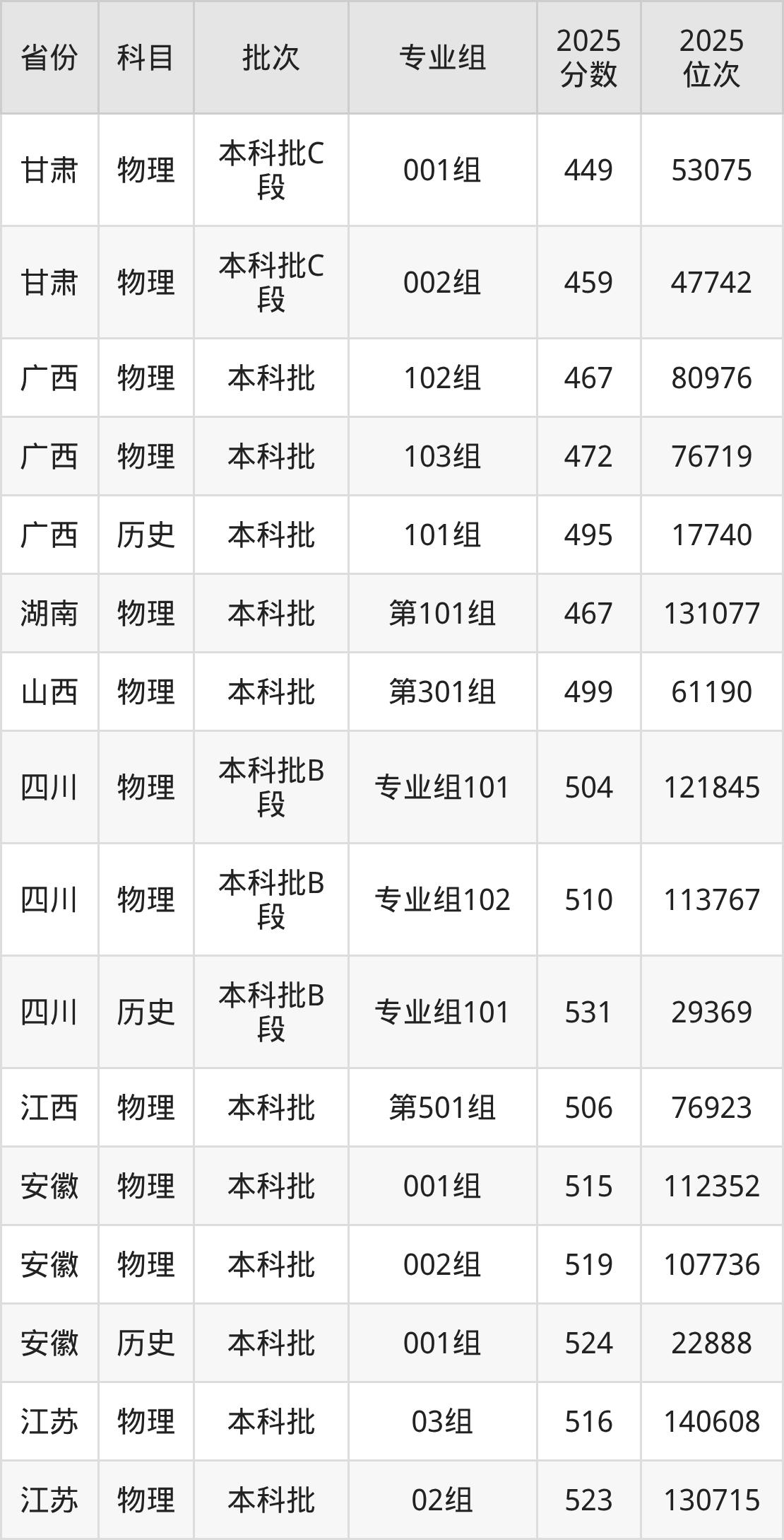 2025年在本科物理类进行招生,各专业组分数线详情如下: