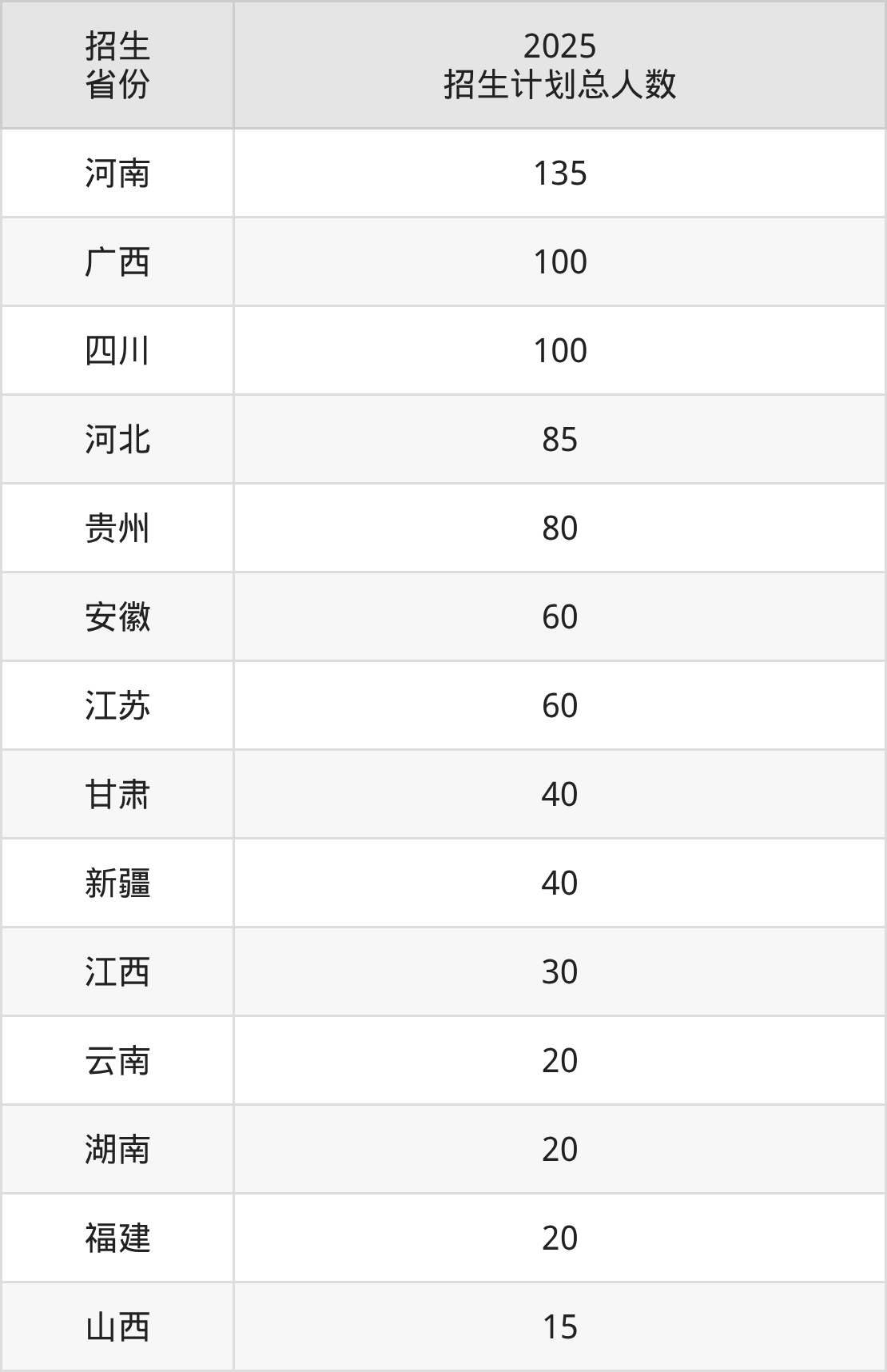 2025年绍兴理工学院面向全国14个省市开展本科招生;招生专业共23个,招生人数共805人。绍兴理工学院在各省具体招生人数情况如下表。