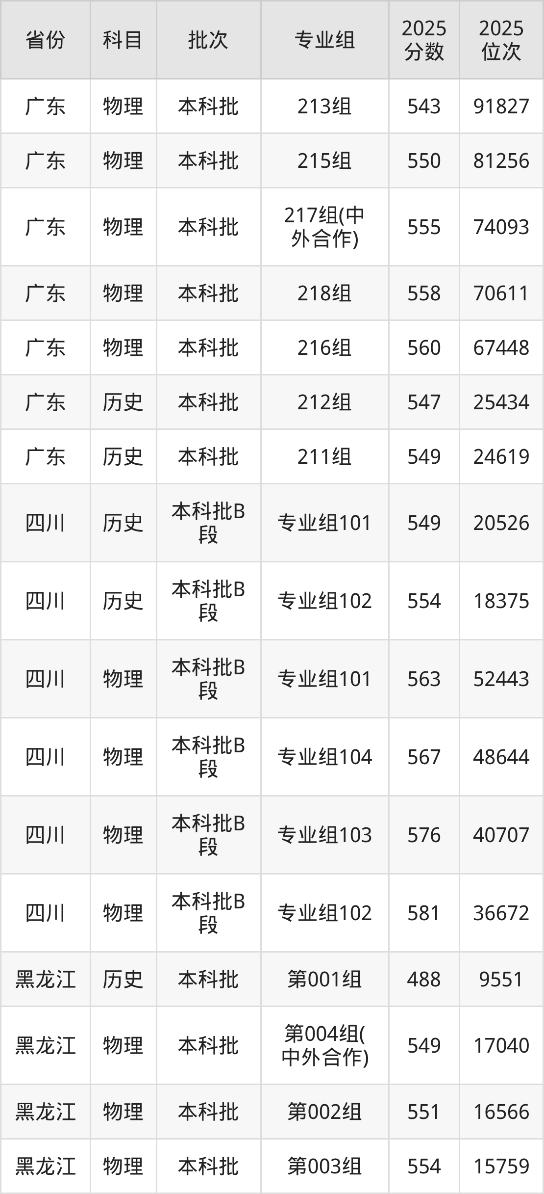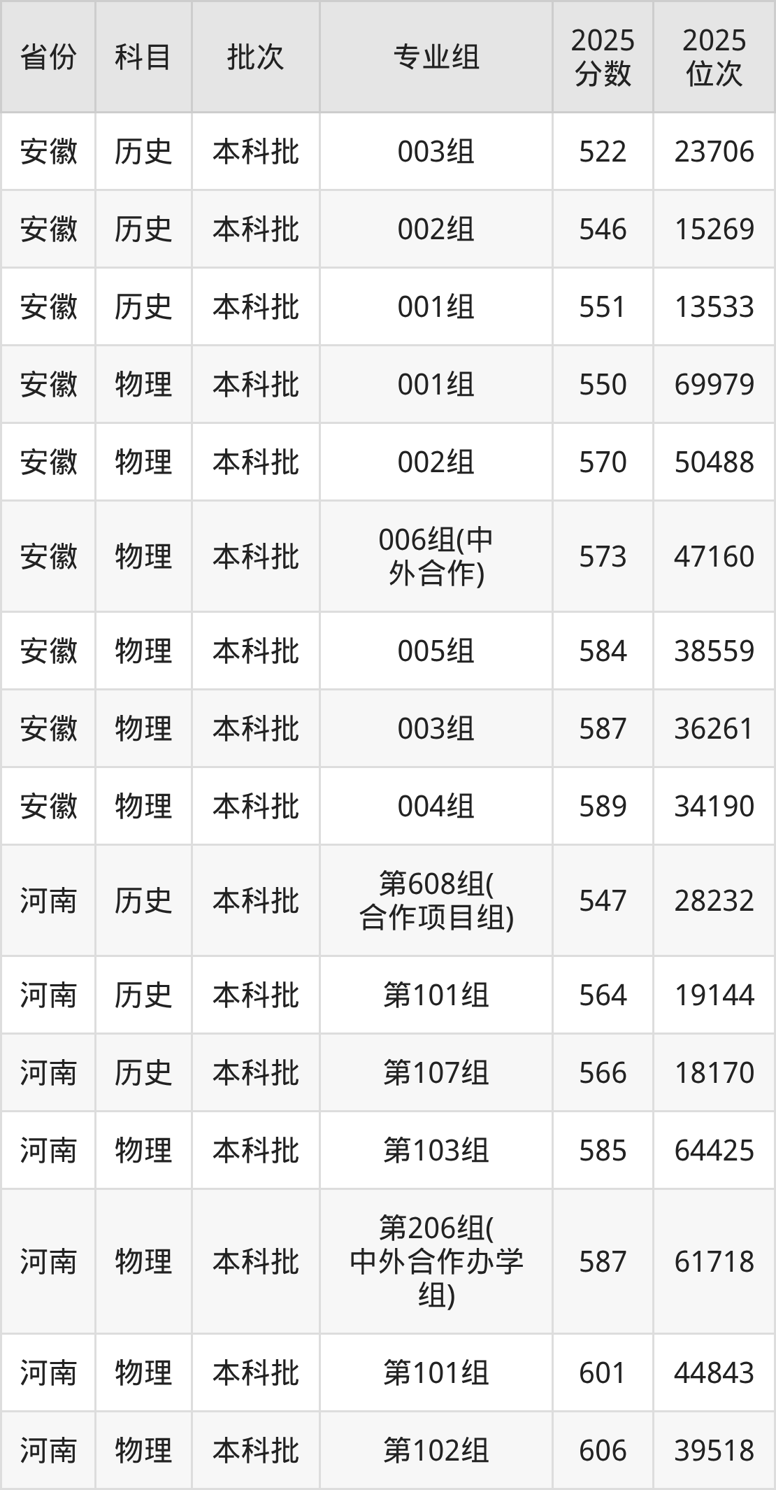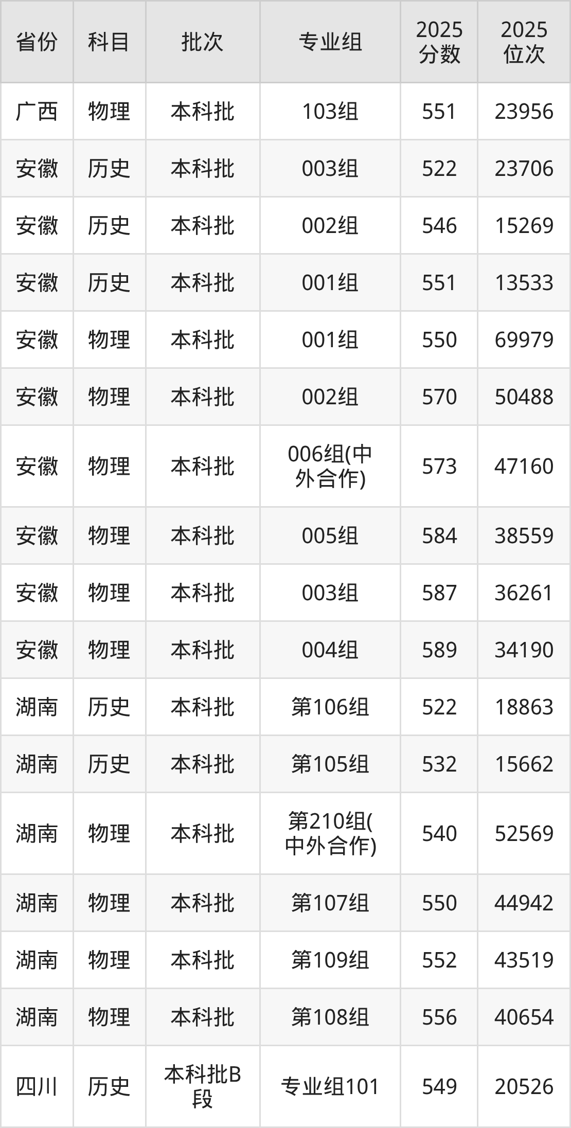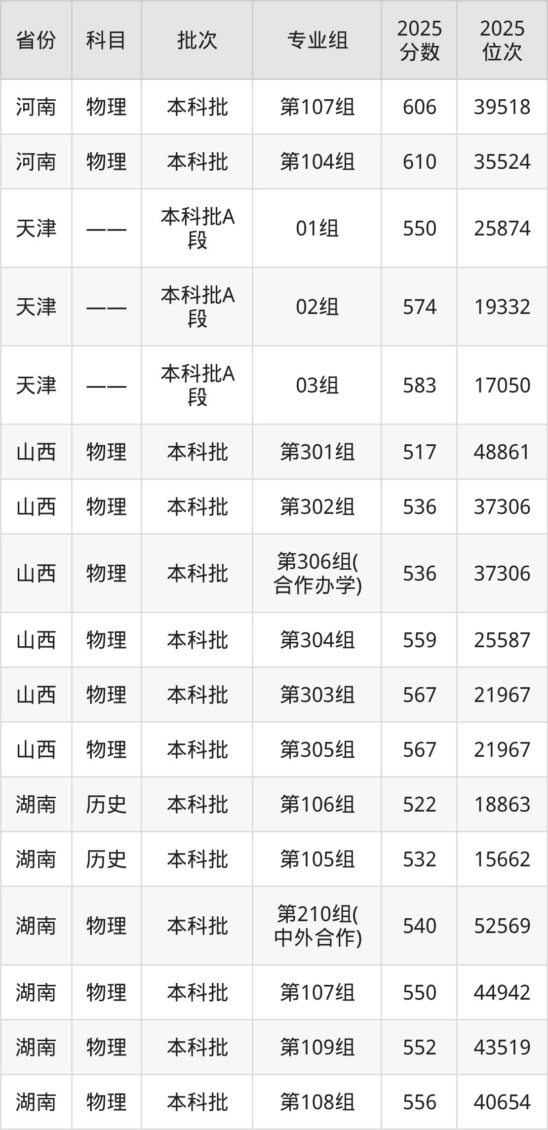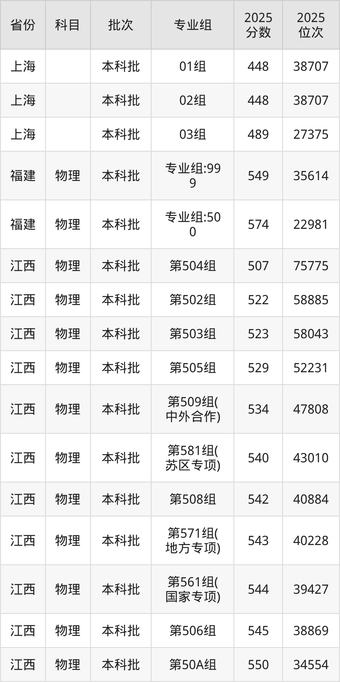 2025年在本科物理类进行招生,各专业组分数线详情如下: