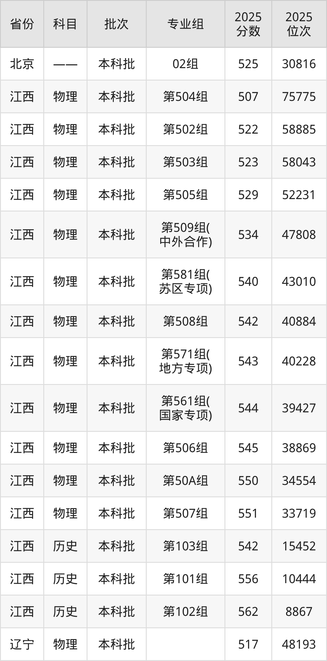 南昌航空大学第03组:2025年投档录取最低分为549分,录取最低位次为45178名。