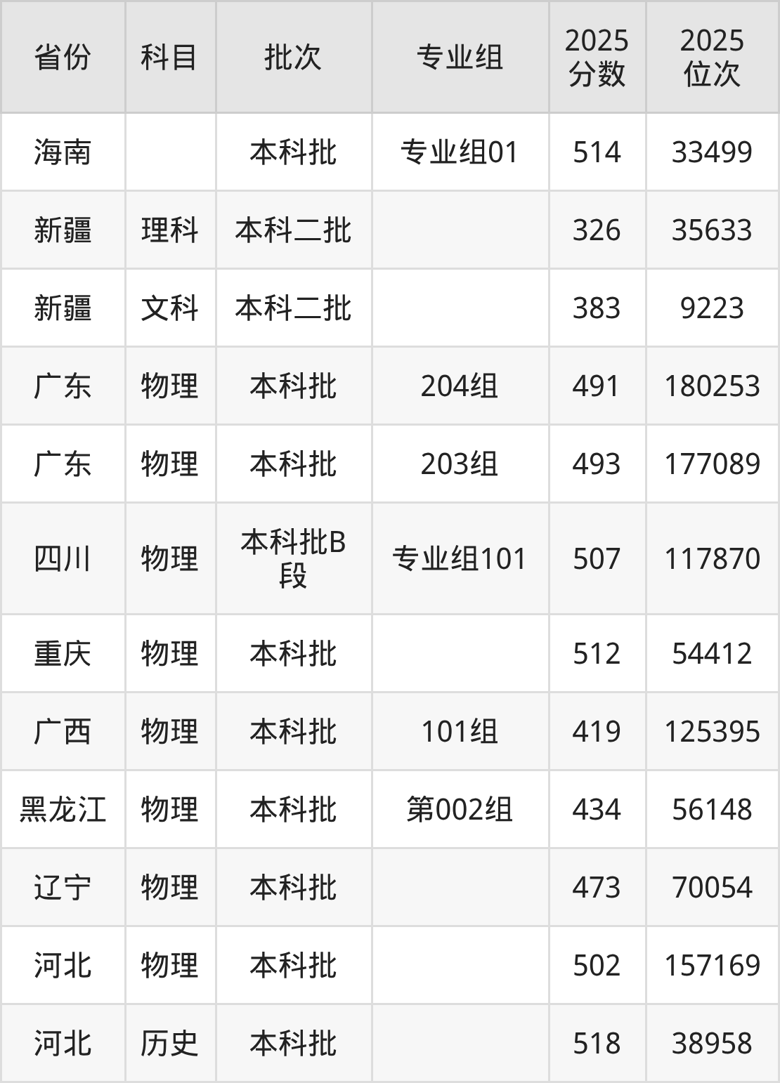 2025年在本科物理类进行招生,各专业组分数线详情如下: