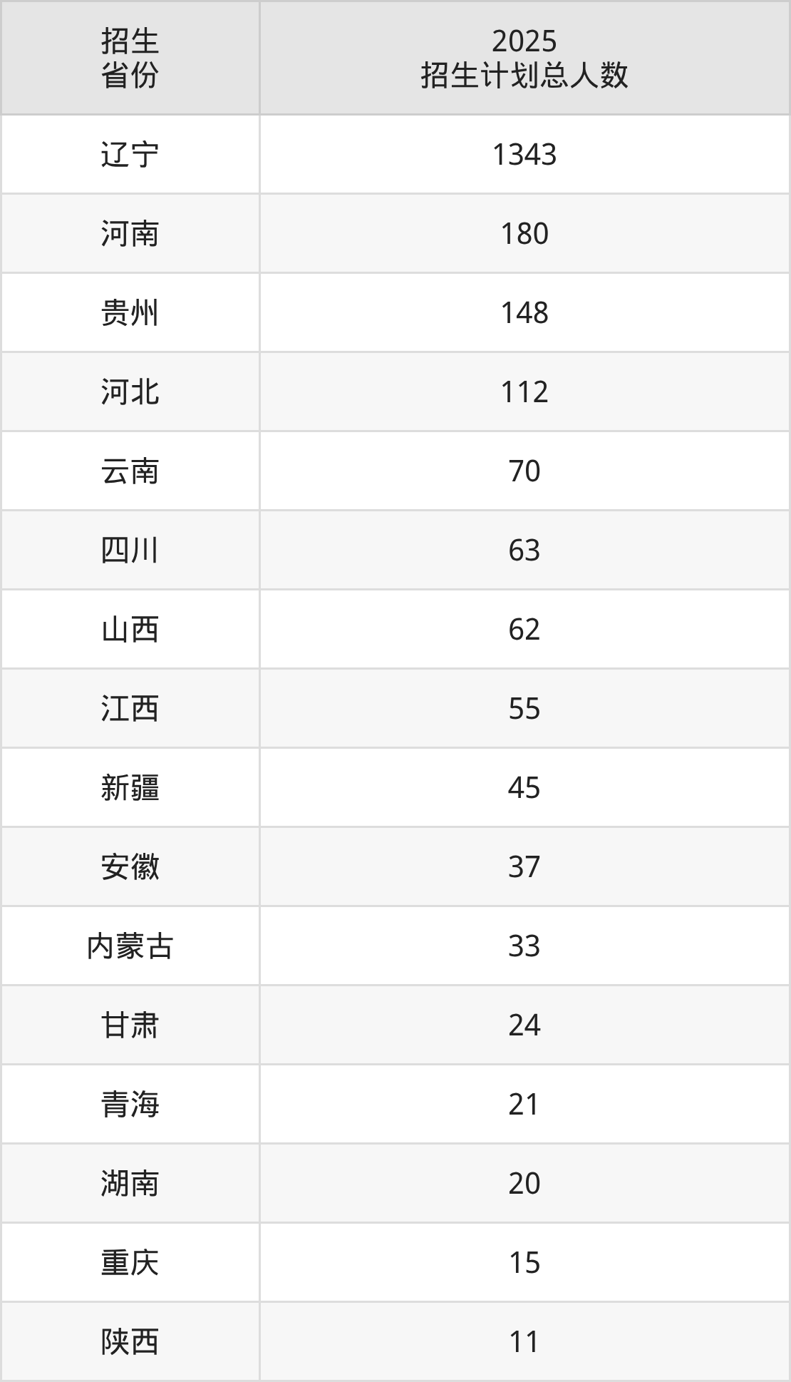 2025年锦州师范高等专科学校面向全国16个省市开展专科招生;招生专业共35个,招生人数共2239人。2025年在辽宁省招生计划总人数是1343人,其中,锦州师范高等专科学校在辽宁省招生人数最多的是护理。锦州师范高等专科学校在各省具体招生人数情况如下表。
