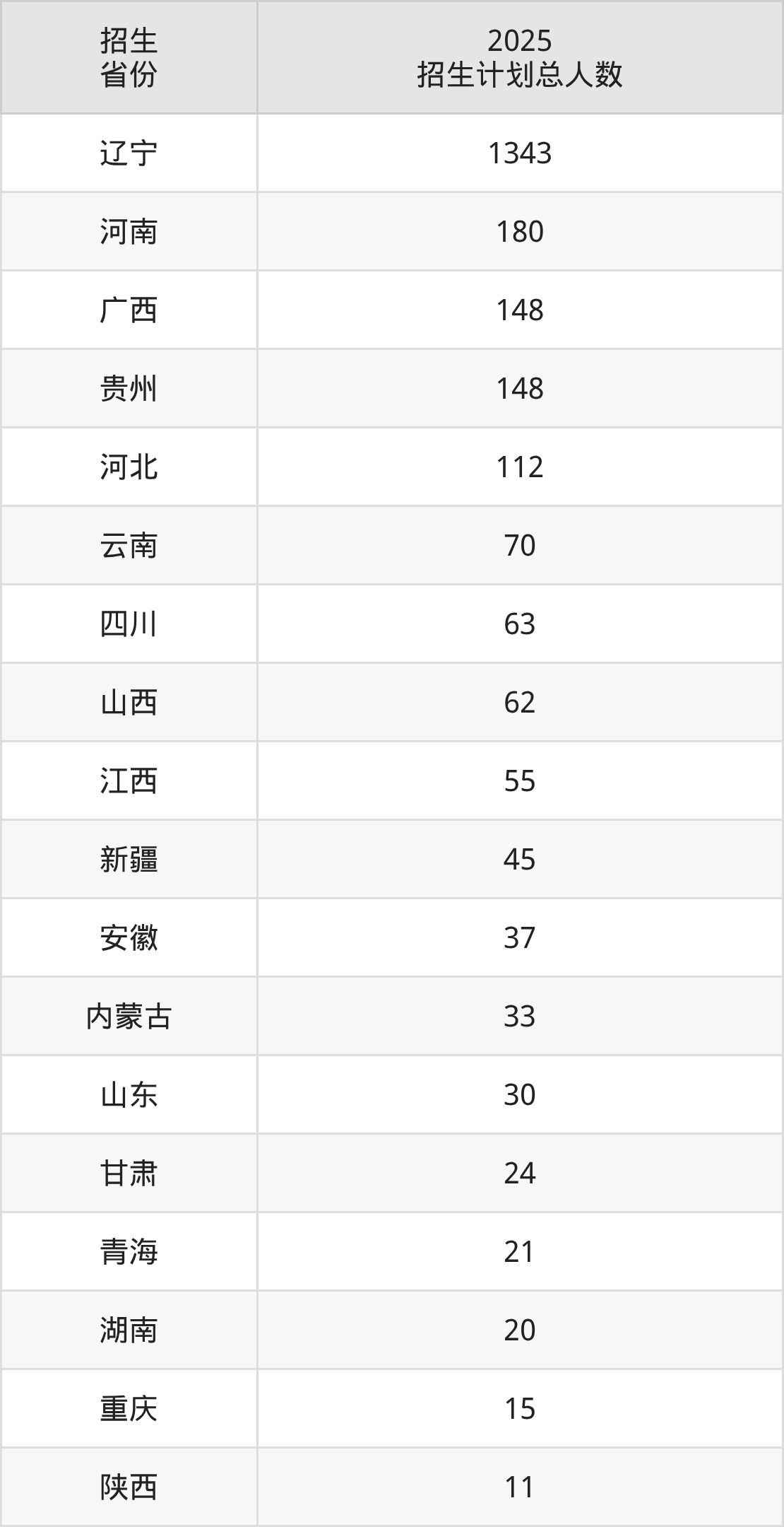 2025年锦州师范高等专科学校面向全国18个省市开展专科招生;招生专业共35个,招生人数共2417人。2025年在辽宁省招生计划总人数是1343人,其中,锦州师范高等专科学校在辽宁省招生人数最多的是护理。锦州师范高等专科学校在各省具体招生人数情况如下表。