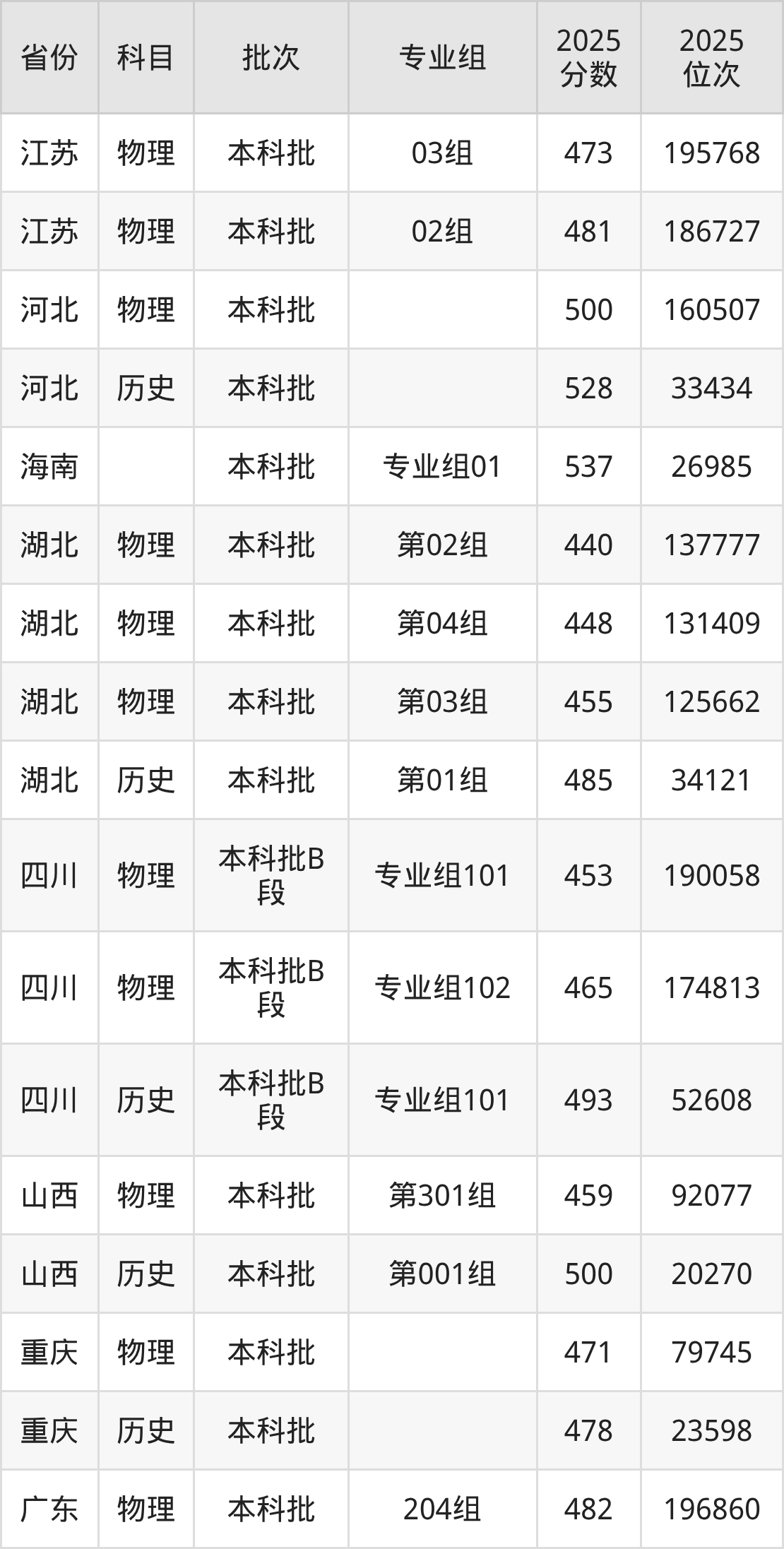 湖北经济学院法商学院03组:2025年投档录取最低分为473分,录取最低位次为195768名。