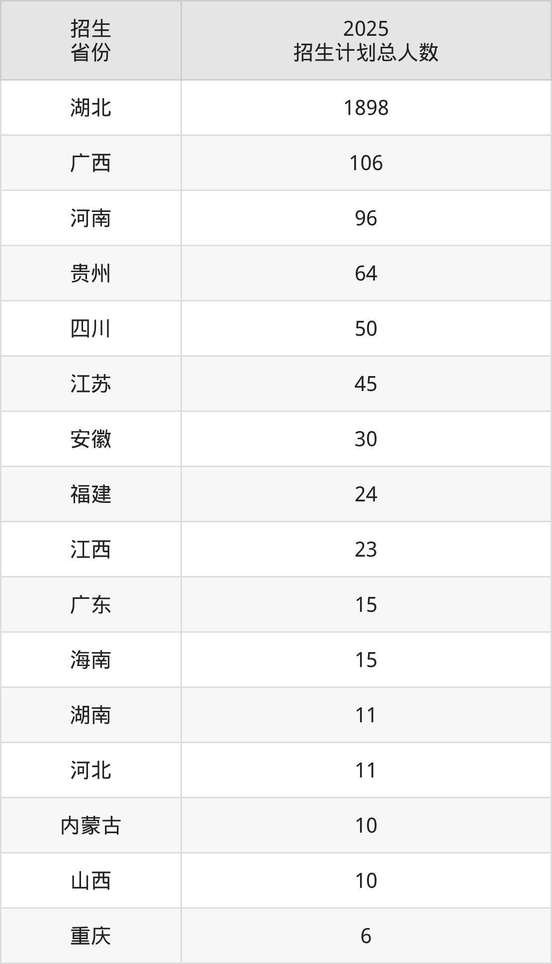 2025年湖北经济学院法商学院面向全国16个省市开展本科招生;招生专业共17个,招生人数共1714人。2025年在湖北省招生计划总人数是1898人,其中,湖北经济学院法商学院在湖北省招生人数最多的是大数据与会计。湖北经济学院法商学院在各省具体招生人数情况如下表。