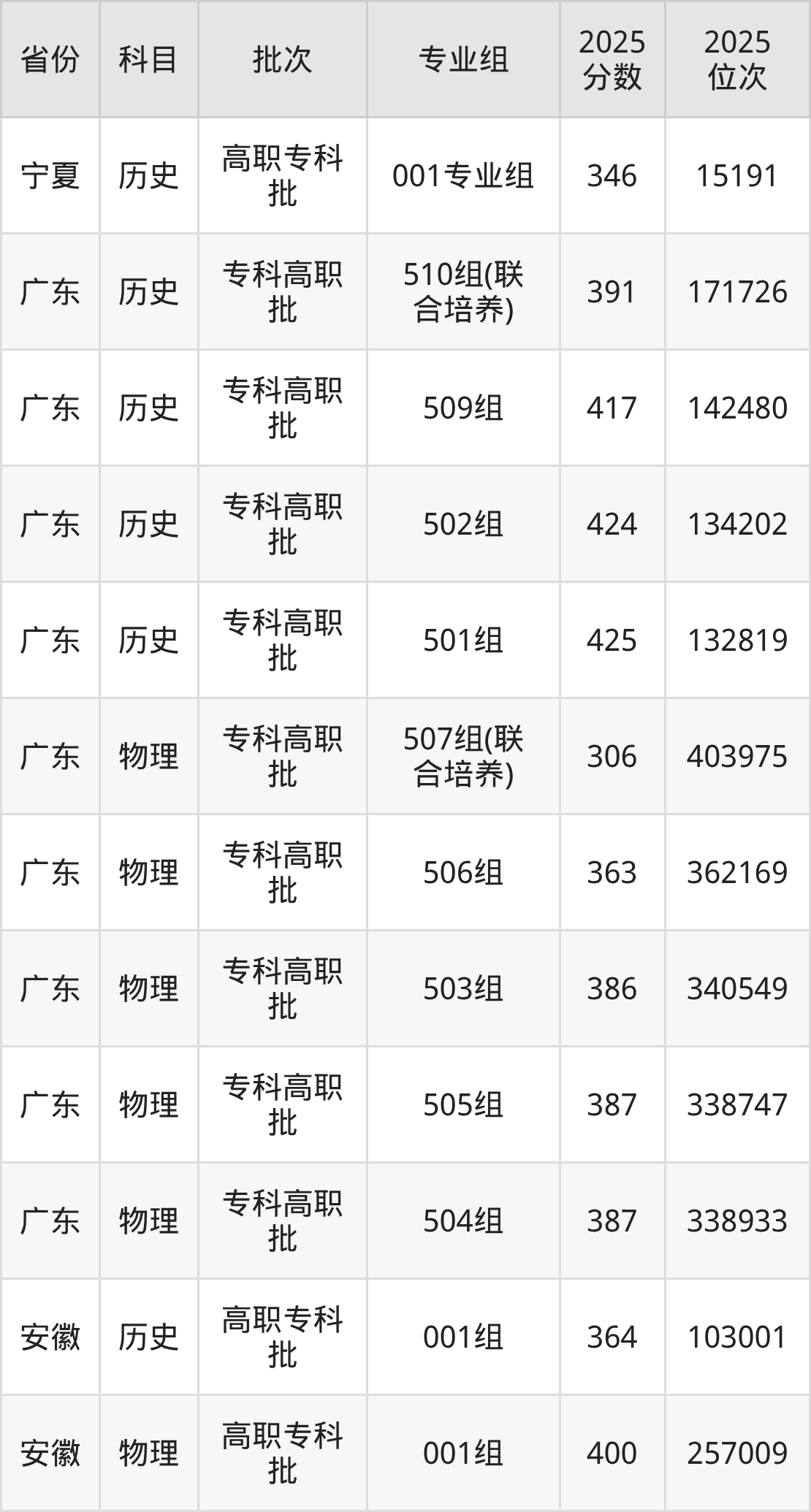 广东财贸职业学院第01组:2025年投档录取最低分为399分,录取最低位次为70696名。