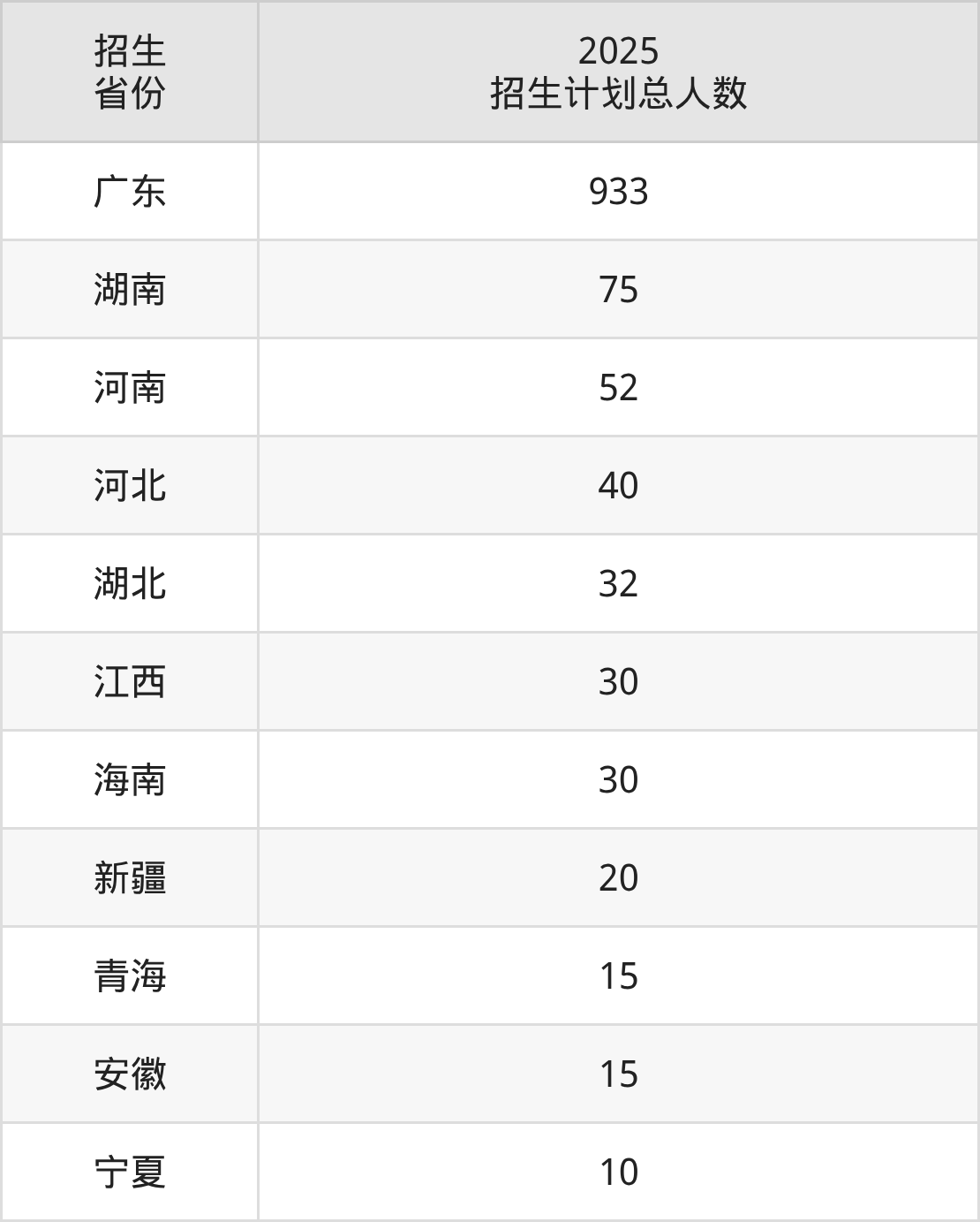 2025年广东财贸职业学院面向全国11个省市开展专科招生;招生专业共24个,招生人数共1252人。2025年在广东省招生计划总人数是933人,其中,广东财贸职业学院在广东省招生人数最多的是汽车技术服务与营销。广东财贸职业学院在各省具体招生人数情况如下表。