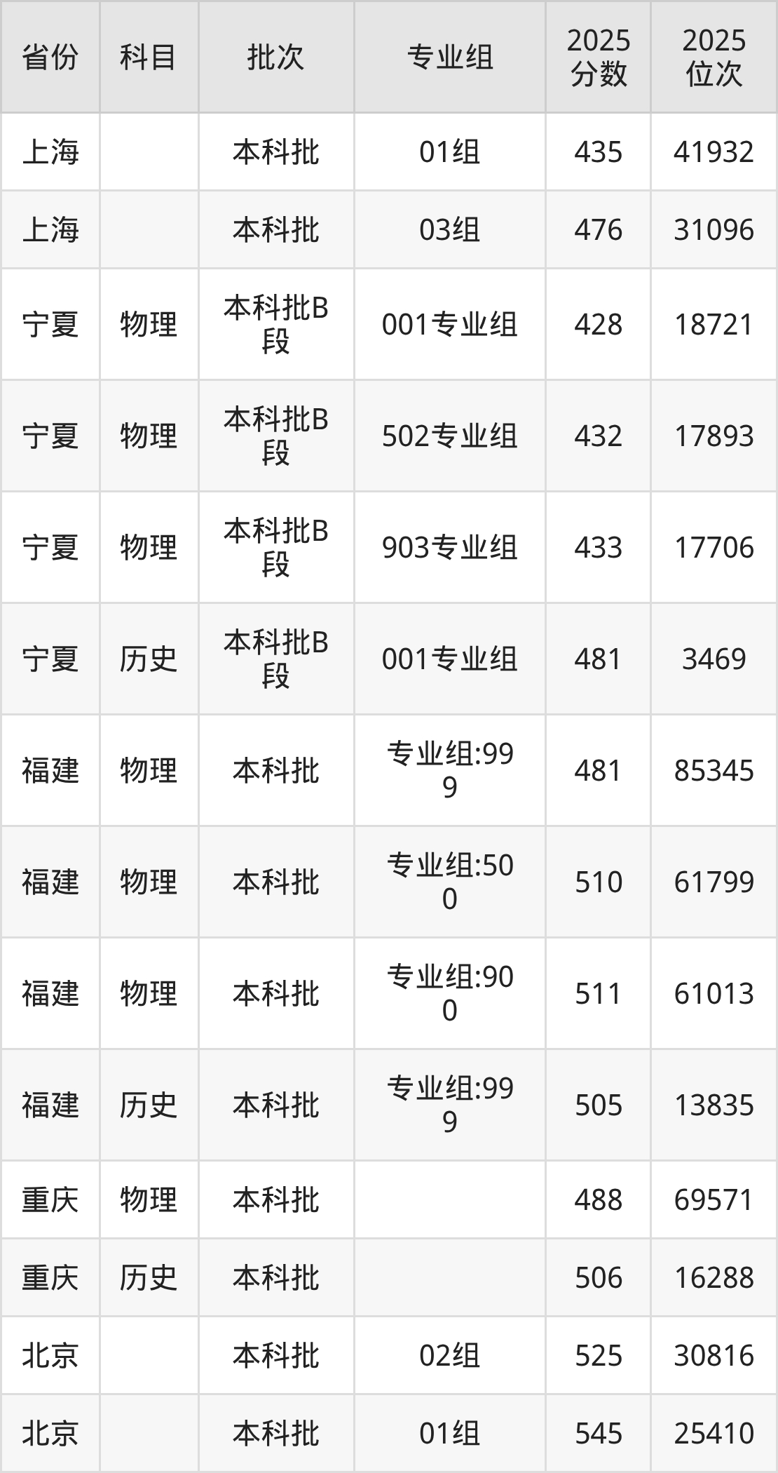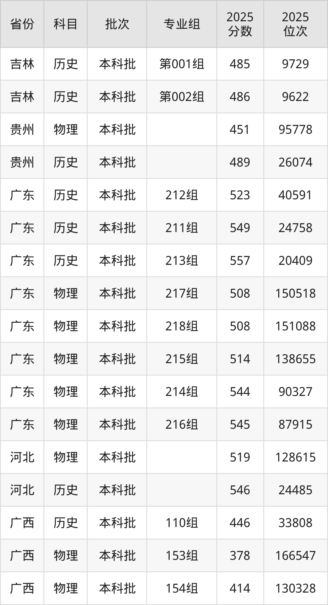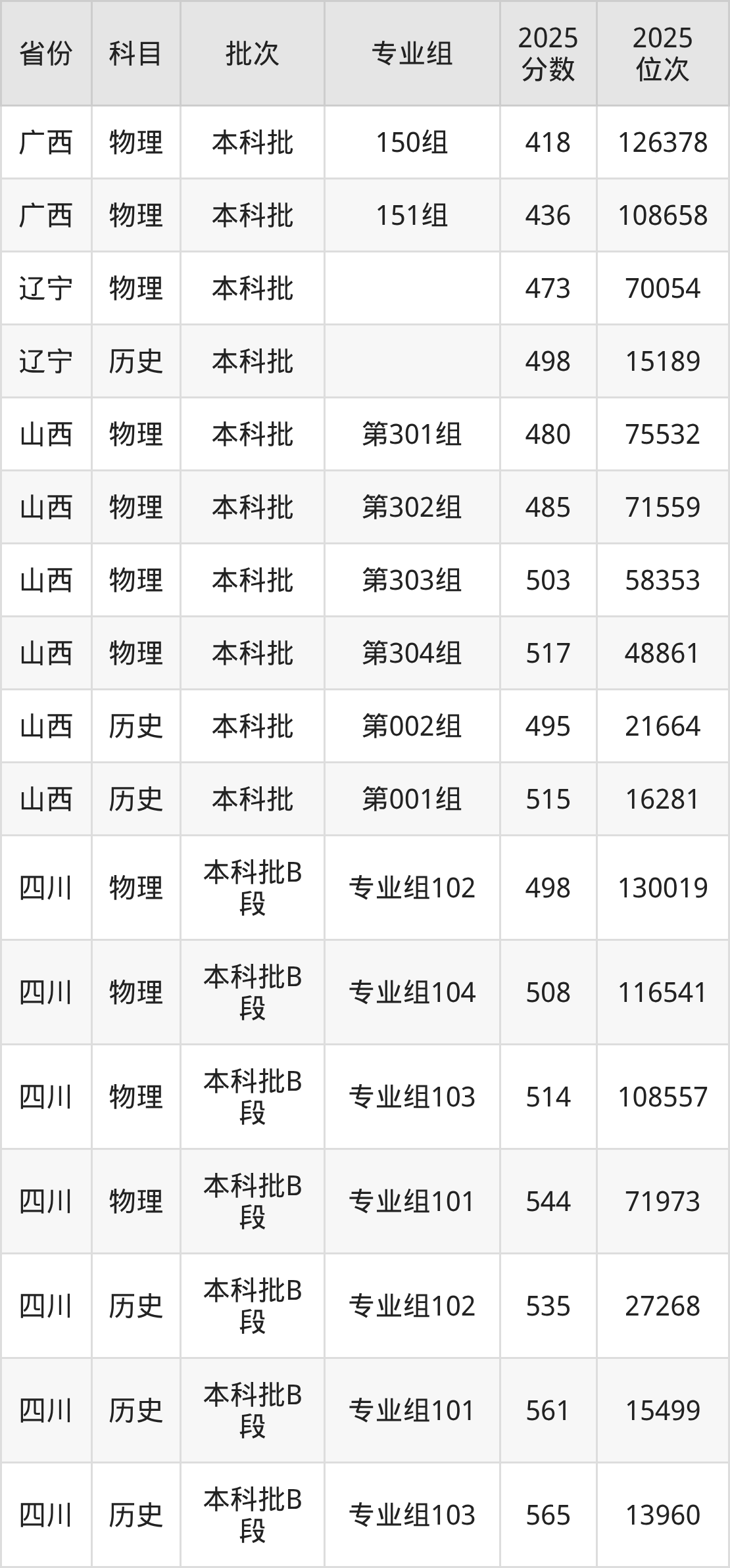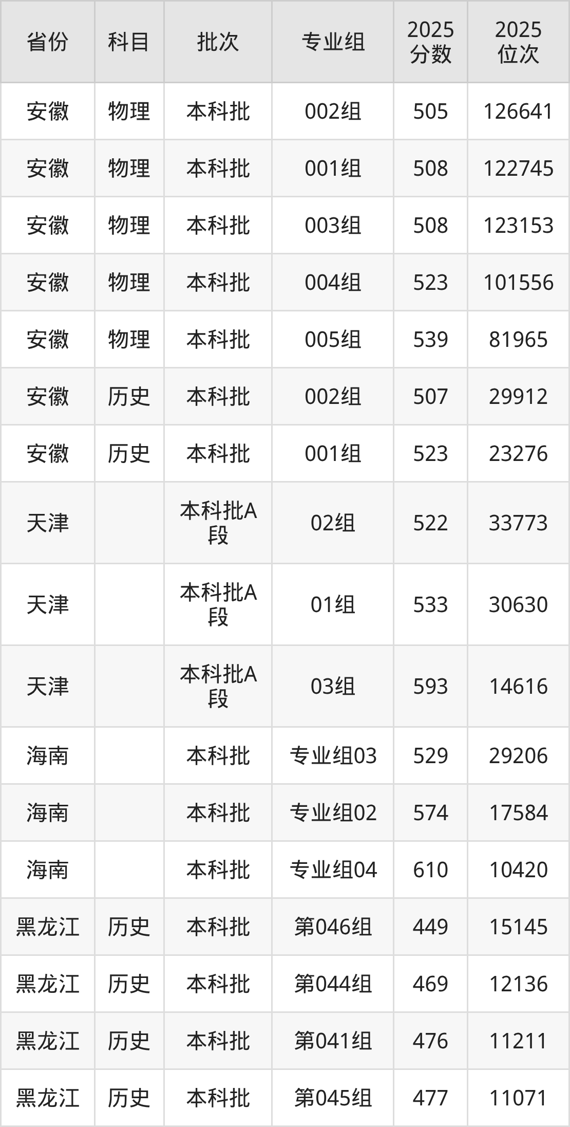 2025年投档录取最低分为506分,录取最低位次为16288名。